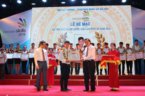 Sau hơn 1 tuần tổ chức và chấm thi Kỳ thi tay nghề quốc gia năm 2016, Ban tổ chức trao thưởng cho 65 thí sinh đạt giải Nhất, 24 thí sinh đạt giải Nhì, 57 thí sinh đạt giải Ba và 221 thí sinh đạt giải Khuyến khích.