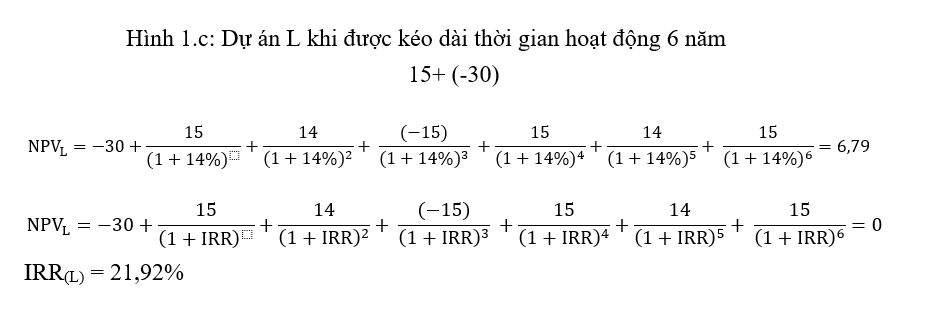 NPV của dự án L với  thời kỳ 6 năm (3 năm x 2). (Hình 1.c)