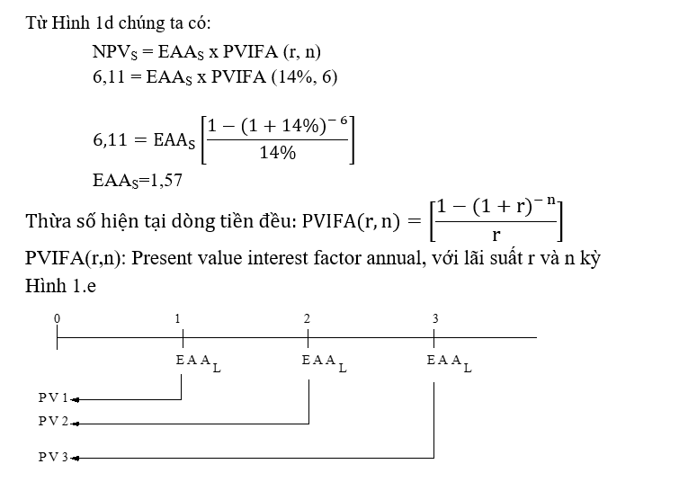 Bước 3: Với kết trên quả trên, Doanh nghiệp chọn dự án L, vì có EAA cao nhất (EAAL= 1,75 > EAAS = 1,57 ) (Hình 1.e)