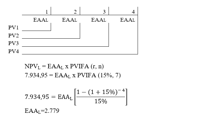 NPV(L) = EAAL x PVIFA (14%, 3)
