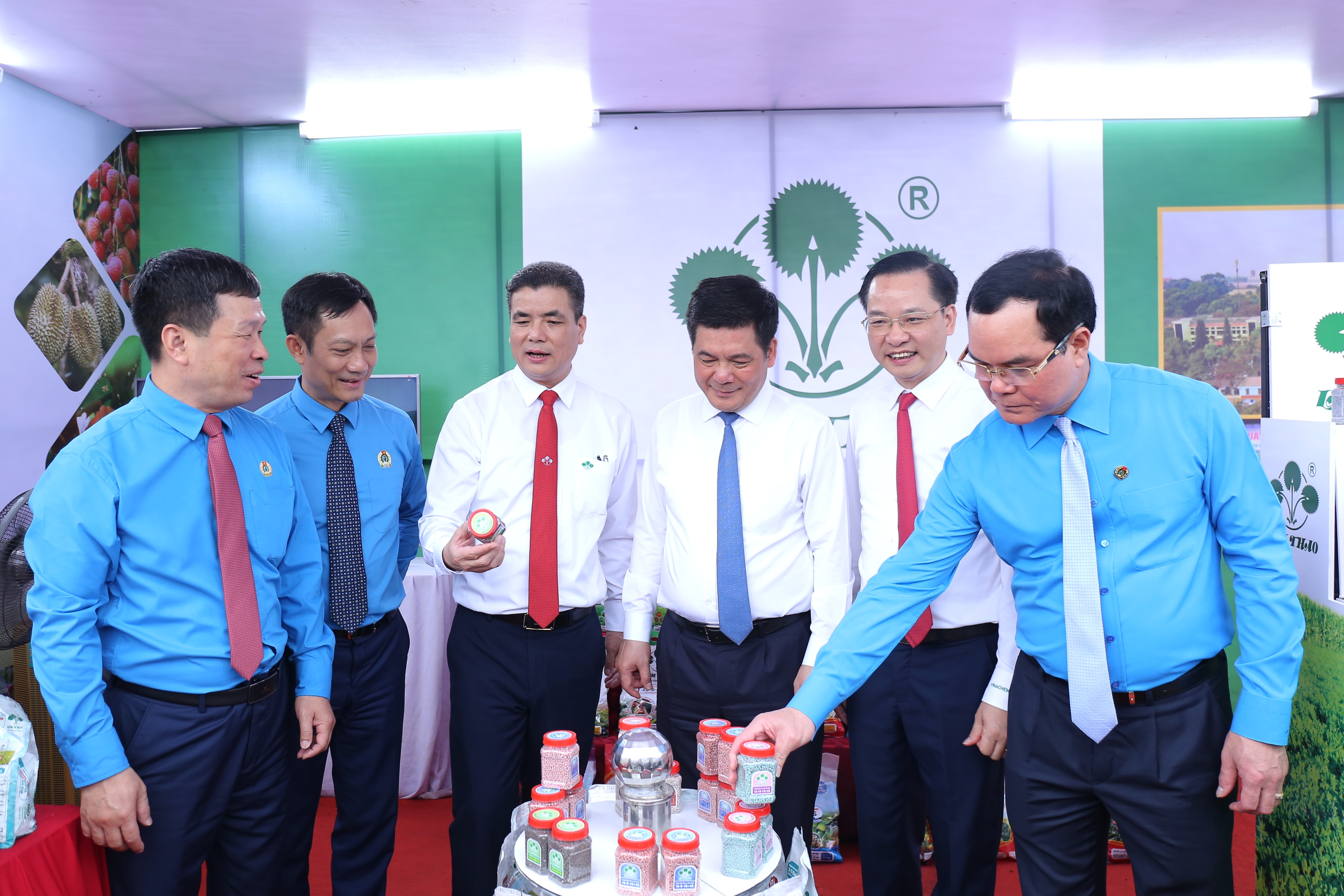 Các đại biểu thăm gian của Công ty CP Supe Phốt phát và Hoá chất Lâm Thao trong khuôn khổ Hội chợ hàng tiêu dùng tại Lễ phát động Tháng Công nhân 2025