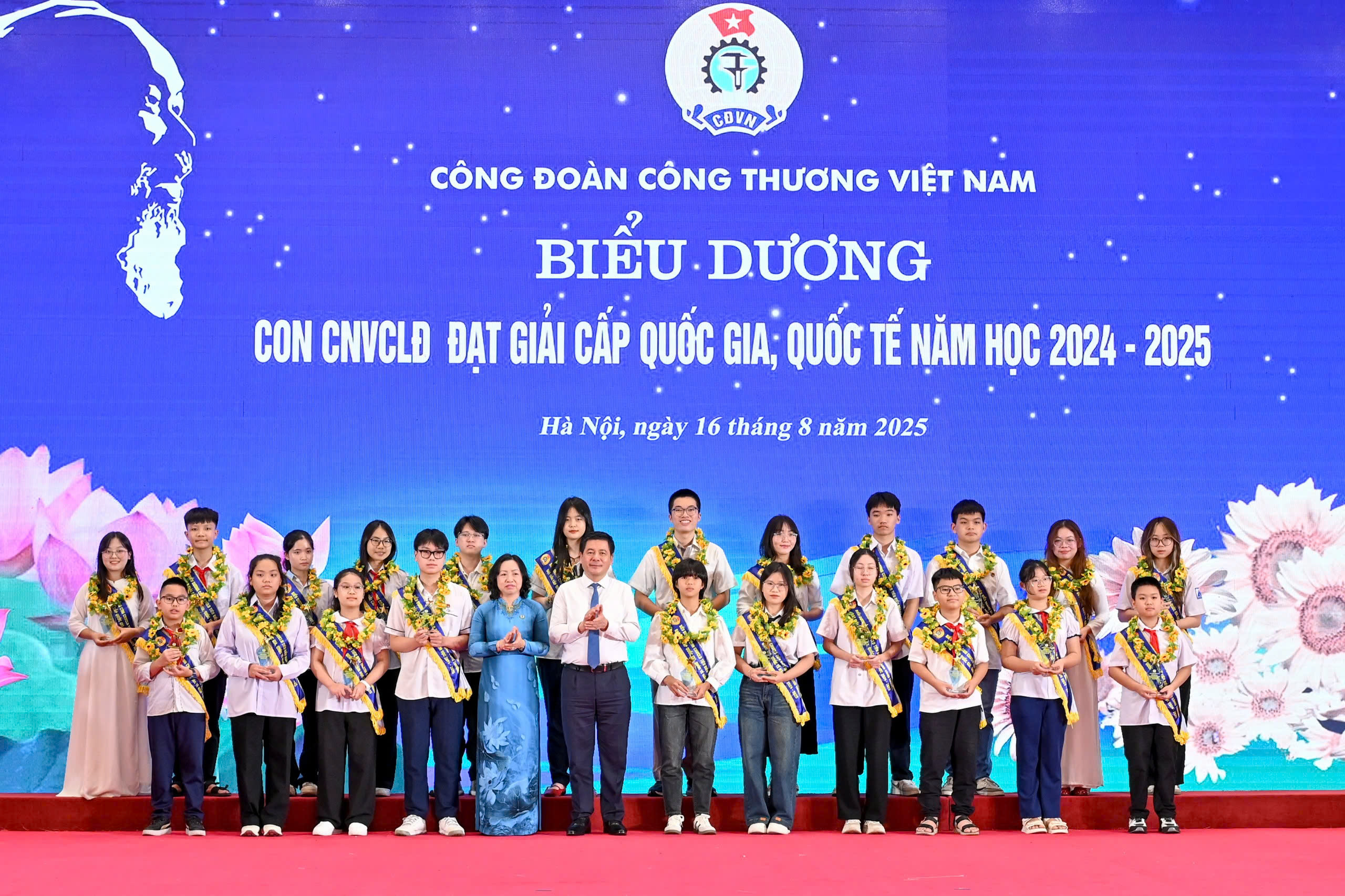Công đoàn Công Thương Việt Nam đã tổ chức lễ Báo công dâng bác và Hội nghị Biểu dương 36 gia đình tiêu biểu và 63 con CNVCLĐ đạt giải quốc gia, quốc tế, vượt khó học giỏi ngành Công Thương năm 2025 vào ngày 16/8