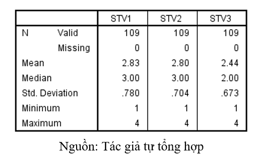 Theo khảo sát thí sinh đã từng tham gia các chương trình tư vấn tuyển sinh của Học viện, có 109 người phản hồi được tổng hợp và phân tích trên phần mềm SPSS 22, được thể hiện trong Bảng 1..