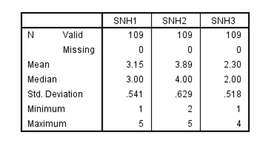 Nguồn: Tác giả tự tổng hợpĐối với nội dung “Nhập học trực tuyến phù hợp với xu hướng và đáp ứng nhu cầu của thí sinh” (SNH2), thí sinh cho rằng đây là xu hướng chung của xã hội khi công nghệ ngày càng phát triển và hầu hết thí sinh có thể thực hiện trên điện thoại thông minh, nhưng một số ít thí sinh ở khu vực nông thôn vẫn còn khó khăn khi chưa có điều kiện tiếp cận với những công nghệ mới; giá trị Mean đạt 3.89. Đối với nội dung về “Nhập học trực tuyến đảm bảo an toàn dữ liệu cá nhân và bảo mật thông tin” (SNH3), các thí sinh cho rằng, khi thao tác trên cổng nhập học không chắc chắn được bảo mật, khi thí sinh tra cứu kết quả xét tuyển họ chỉ cần nhập họ tên là hiển thị các thông tin cá nhân trúng tuyển hay không, từ đó họ có thể sử dụng thông tin này để nhập học, do vậy tính bảo mật chưa cao, chưa có xác nhận nhiều lớp khi đăng nhập. Ngoài ra, sau khi nhập học trực tuyến thành công, thí sinh chưa thấy hiển thị thông tin phân lớp, phân khoa, mã số thẻ SV,... mà phải chờ một thời gian sau Học viện mới có thông báo. Giá trị Mean chỉ đạt 2.30.