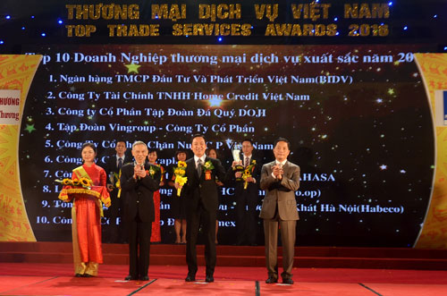 Sáng 22/04 tại Hà Nội, Bộ Công thương long trọng tổ chức Lễ trao giải thưởng “ Thương mại Dịch vụ Việt Nam 2016 – VietNam Top Trade Services 2016” . Đây là giải thưởng nhằm động viên, tôn vinh các doanh nghiệp, doanh nhân hoạt động trong 11 nhóm, ngành hàng Thương mại dịch vụ mà Việt Nam cam kết mở cửa khi gia nhập Tổ chức Thương mại Thế giới WTO vào năm 2007.