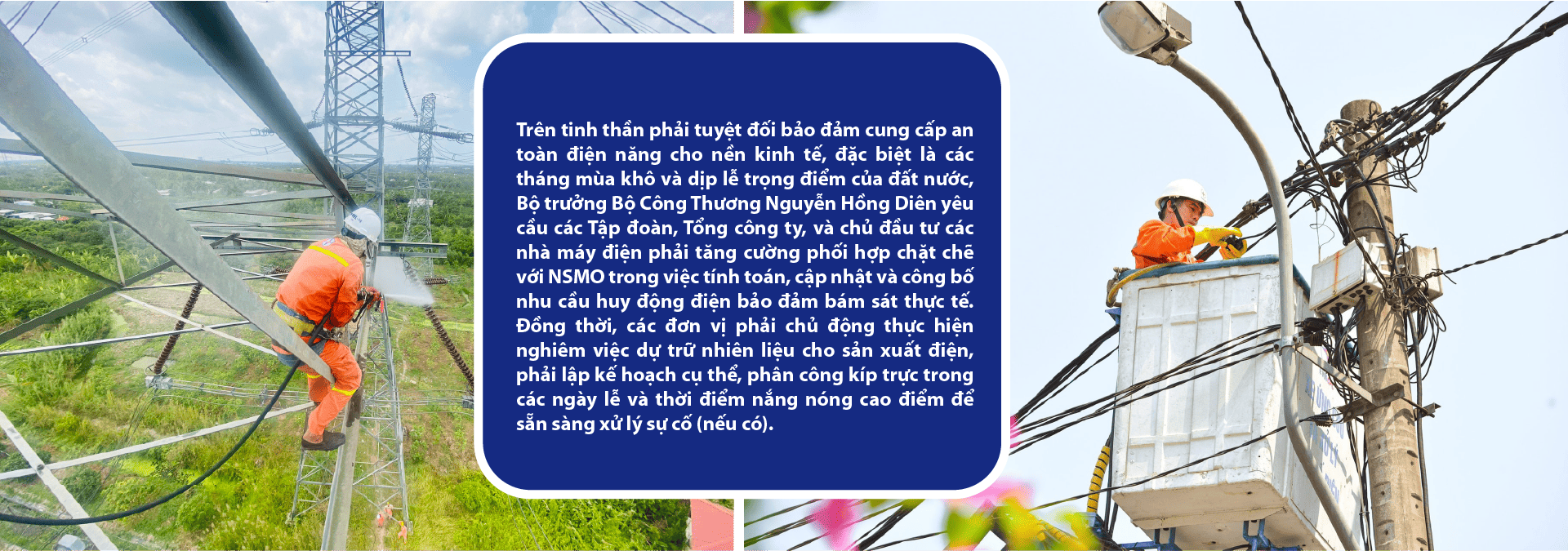 NSMO đã triển khai mô phỏng vận hành theo nhiều kịch bản phụ tải (kịch bản cơ sở, kịch bản cao, kịch bản cực đoan) trên nền tảng hệ thống điều khiển và giám sát tiên tiến, từ đó xác định các mức dự phòng cần thiết, tối ưu thứ tự huy động tổ máy và cơ cấu nhiên liệu. Đồng thời, phối hợp chặt chẽ với các đơn vị điều độ miền, tổng công ty điện lực và nhà máy điện để đảm bảo hệ thống điện quốc gia cung ứng đủ điện trong các tháng mùa khô, cũng như cho cả năm 2025.