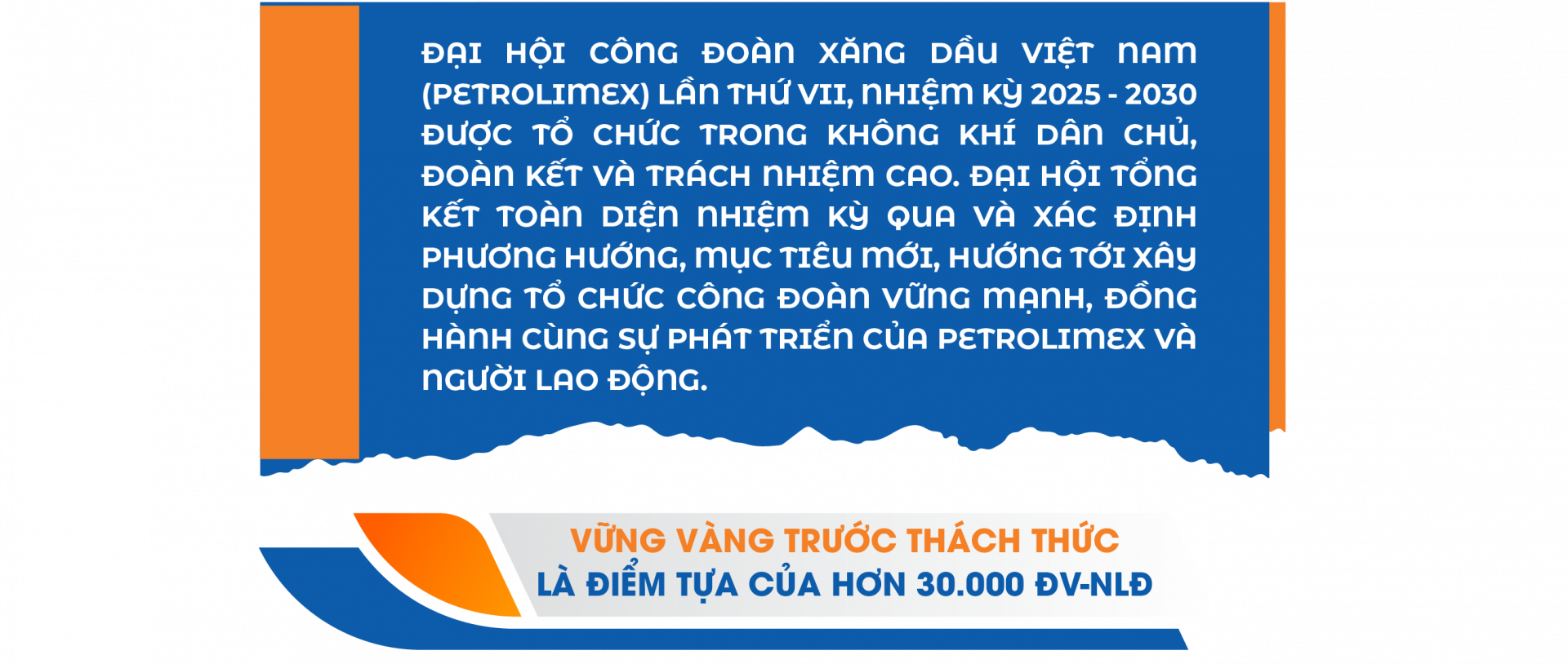Nhiệm kỳ 2025-2030, Công đoàn Xăng dầu Việt Nam tiếp tục khẳng định vai trò là chỗ dựa vững chắc của ĐV-NLĐ, đồng hành cùng doanh nghiệp trong tiến trình đổi mới và hội nhập, với phương châm “Đoàn kết - Dân chủ - Kỷ cương - Đổi mới - Phát triển”.