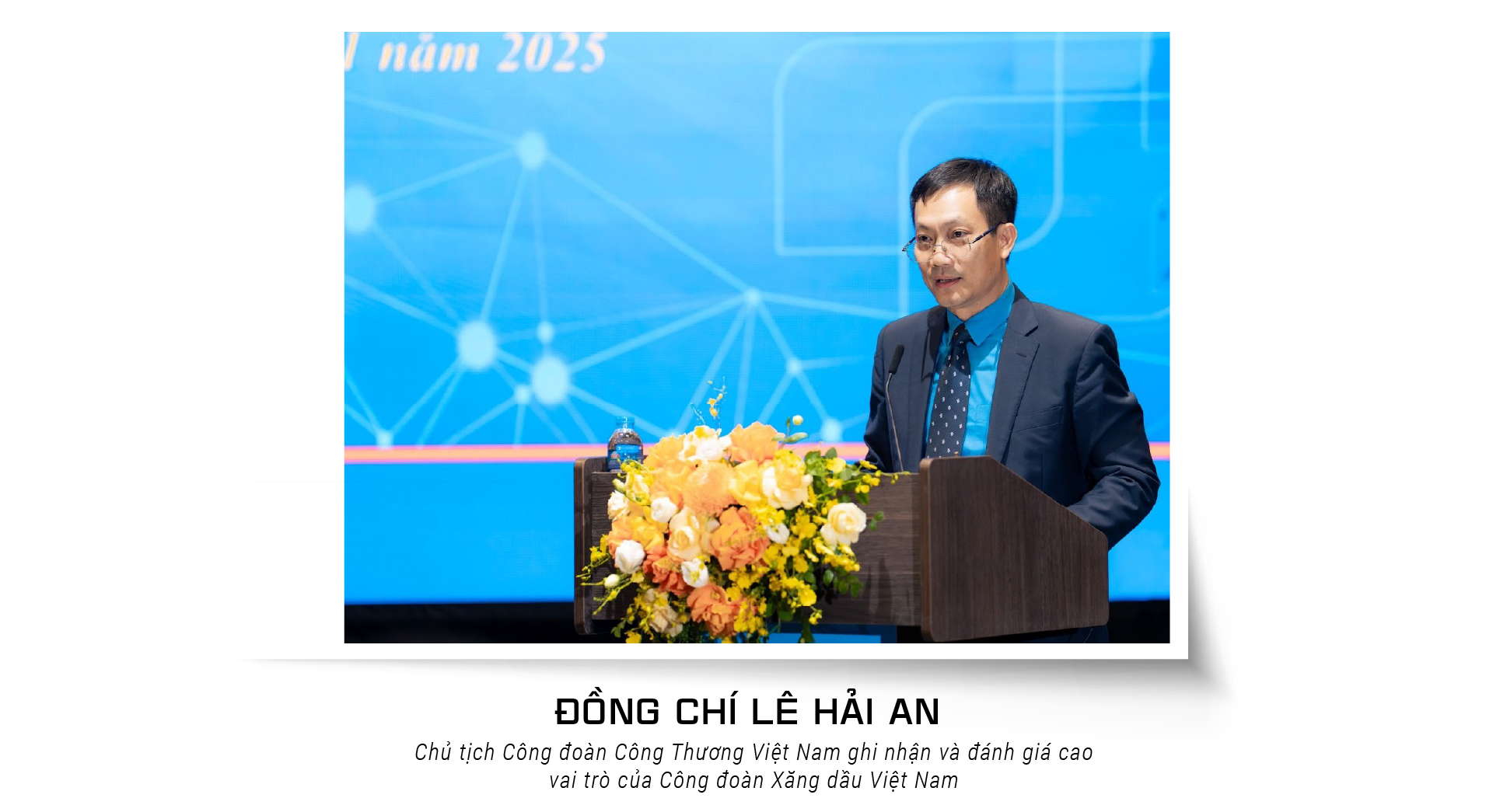 Tại Đại hội, thay mặt Ban Thường vụ Công đoàn Công Thương Việt Nam, Chủ tịch Công đoàn Công Thương Lê An Hải bày tỏ đồng tình với báo cáo Chính trị trung tâm, Báo cáo kiểm điểm, sự chỉ đạo điều hành của BCH, BTV Công đoàn Xăng dầu trong giai đoạn vừa qua. Các kết quả đạt được rất ấn tượng nhờ vào những nỗ lực của tổ chức Công đoàn, còn có sự quan tâm của cấp ủy Đảng, Hội đồng quản trị Petrolimex.