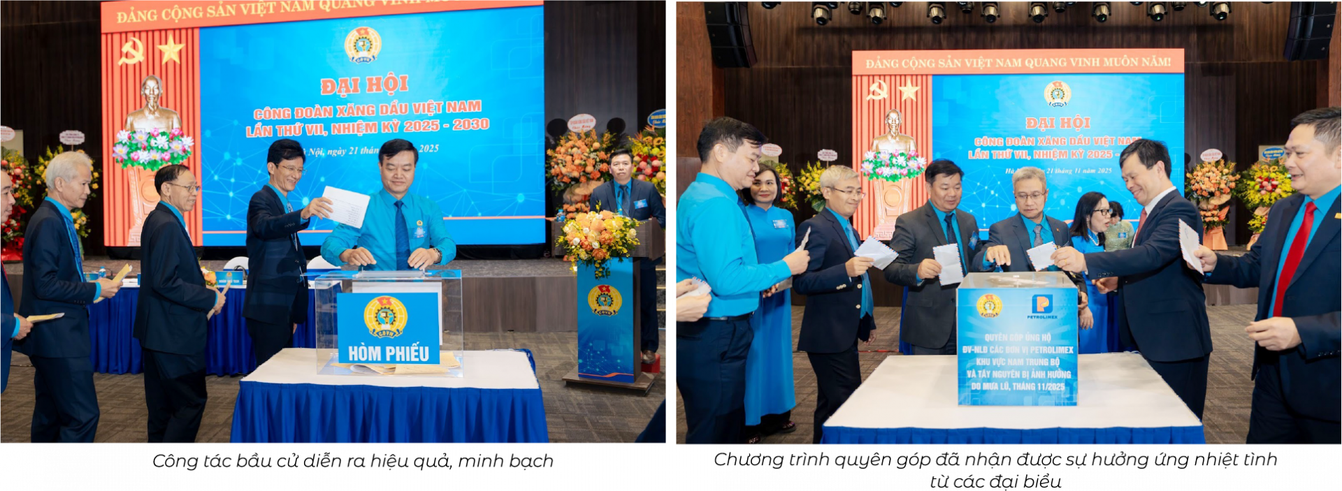 Bên lề Đại hội, trong bối cảnh mưa lũ đang diễn biến phức tạp tại Nam Trung Bộ và Tây Nguyên, đặc biệt ở Gia Lai, Đăklăk và Khánh Hòa, nhiều đoàn viên và người lao động Petrolimex tại khu vực này bị ảnh hưởng nặng nề. Với tinh thần “tương thân tương ái”, Ban Tổ chức Đại hội đã quyết định triển khai quyên góp trực tiếp để ủng hộ các đoàn viên, người lao động bị thiệt hại. Chương trình đã nhận được sự hưởng ứng nhiệt tình từ các đại biểu, góp phần lan tỏa giá trị nhân văn và thể hiện vai trò tiên phong của tổ chức Công đoàn trong các hoạt động vì người lao động.