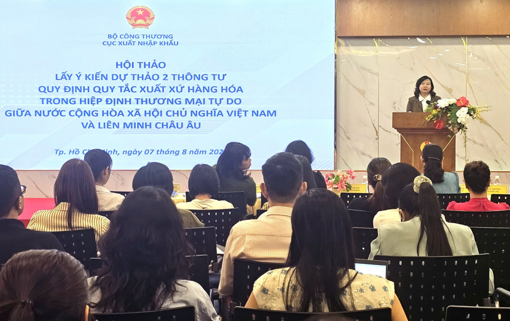 Để tận dụng tốt hơn ưu đãi từ một Hiệp định FTA thế hệ mới tại khu vực thị trường đối tác chiến lược, thời gian qua, Cục Xuất nhập khẩu đã tổ chức Hội thảo lấy ý kiến các doanh nghiệp, hiệp hội ngành hàng và cơ quan quản lý địa phương đối với dự thảo Thông tư. Đồng thời, tạo điều kiện để cộng đồng doanh nghiệp, các cán bộ tại cơ quan, tổ chức cấp C/O lắng nghe và trao đổi trực tiếp với cán bộ trực tiếp tham gia đàm phán quy tắc xuất xứ trong Hiệp định EVFTA và cán bộ soạn thảo Thông tư hướng dẫn thực thi quy tắc xuất xứ tại Việt Nam.