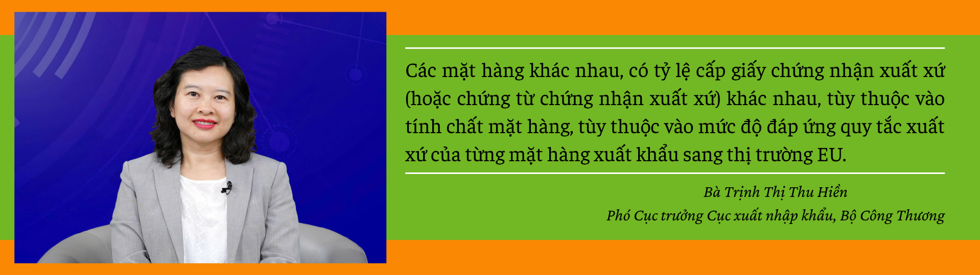 “Có thể thấy rằng, việc sử dụng giấy chứng nhận xuất xứ (hoặc chứng từ chứng nhận xuất xứ) trong khuôn khổ EVFTA đang tăng dần và đang có chiều hướng khá tích cực”, bà Trịnh Thị Thu Hiền nhấn mạnh, đồng thời nêu một số ví dụ về một số mặt hàng cụ thể: