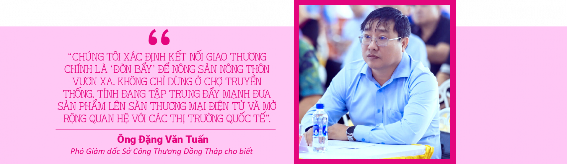 Từ năm 2022 đến nay, toàn tỉnh đã tham gia hơn 80 hội chợ, triển lãm, diễn đàn, tuần lễ OCOP, hội nghị xúc tiến thương mại, kết nối cung cầu, phiên chợ nông sản, thu hút gần 4.000 lượt doanh nghiệp và hợp tác xã tham gia. Các sản phẩm như xoài Cao Lãnh, sầu riêng Ngũ Hiệp, vú sữa Lò Rèn, gạo huyết rồng, sen Đồng Tháp… luôn được tiêu thụ mạnh.