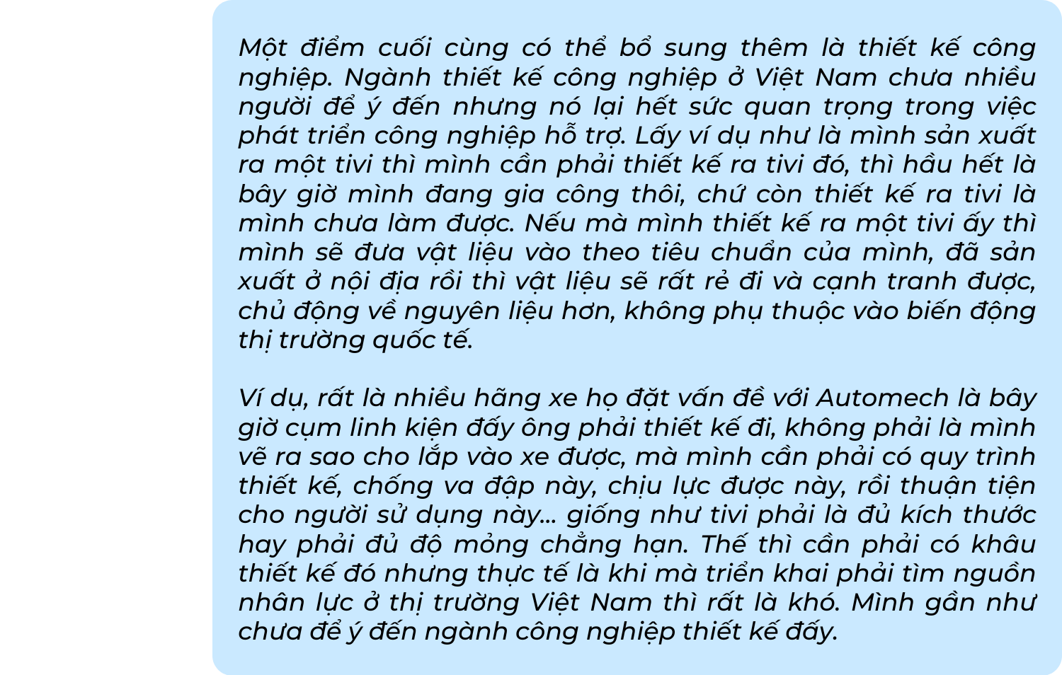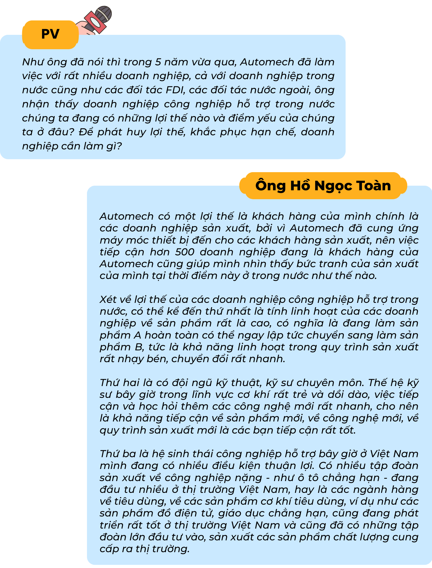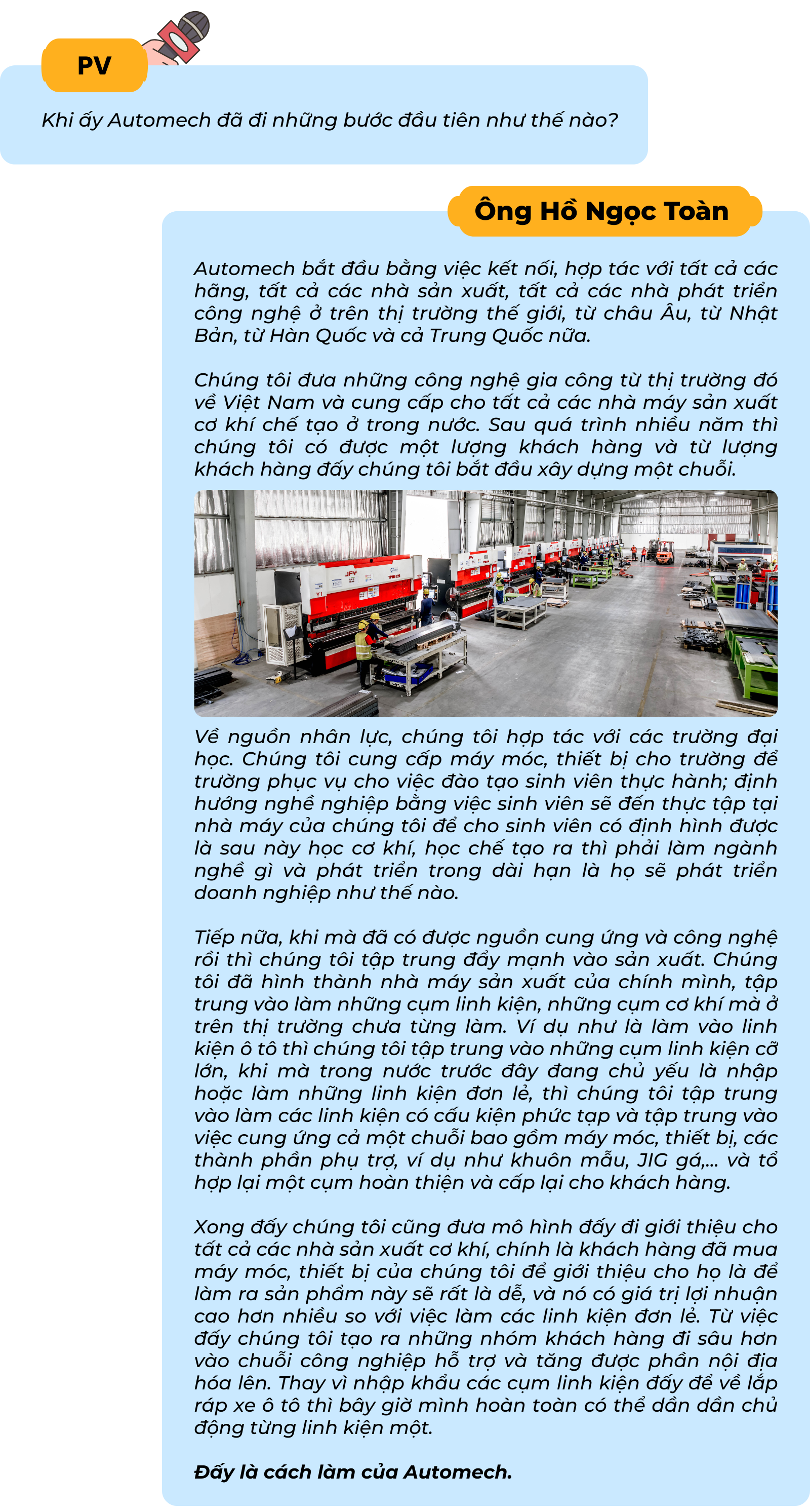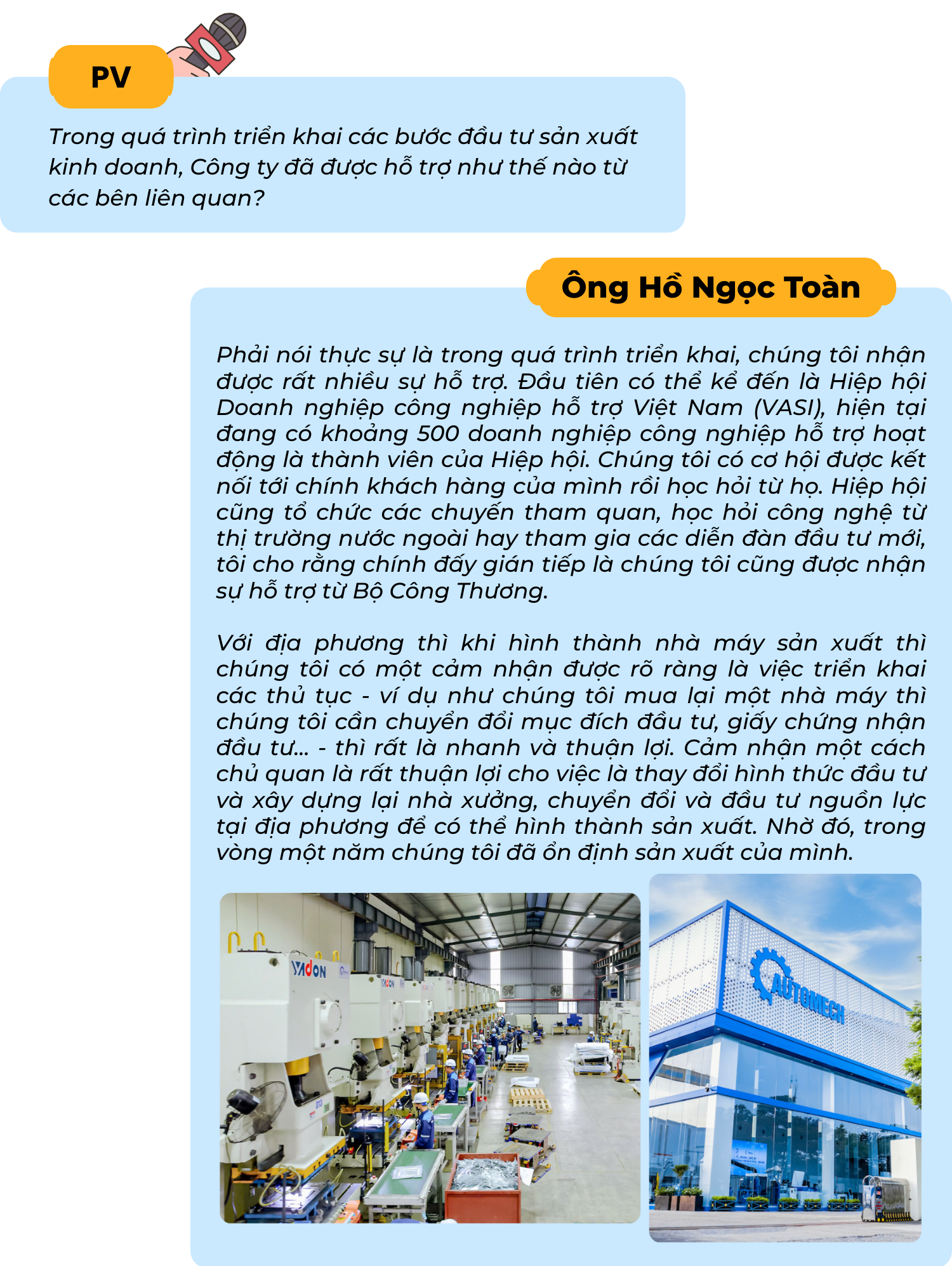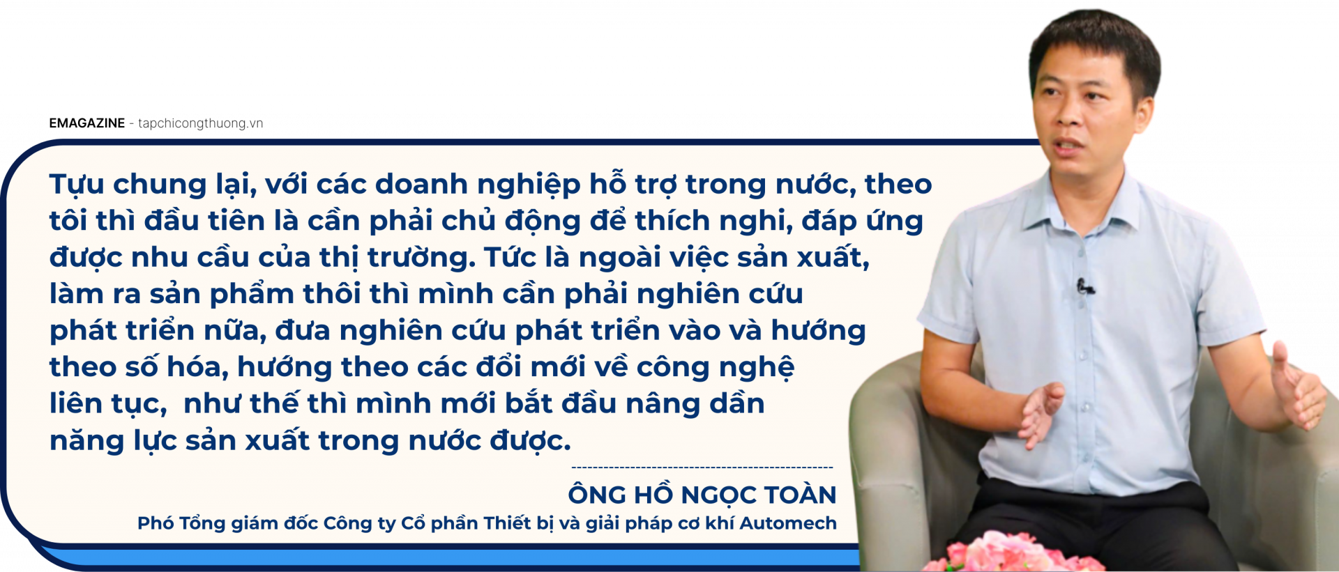 Tạp chí Công Thương đã có một số chia sẻ với ông Hồ Ngọc Toàn - Phó Tổng giám đốc Công ty Cổ phần Thiết bị và giải pháp cơ khí Automech về vấn đề này!