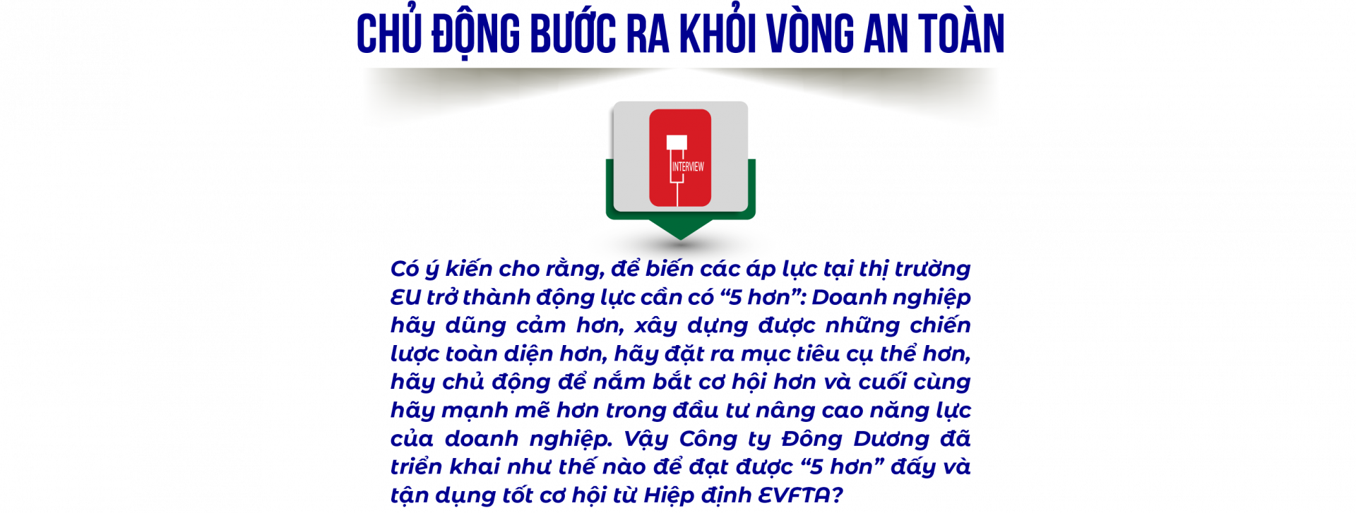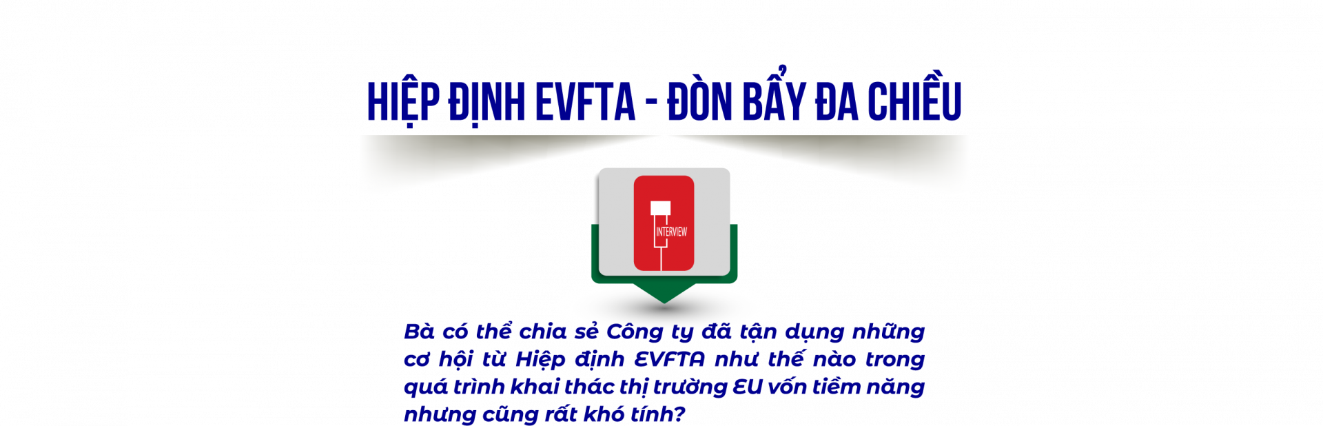 Vì vậy, khi Hiệp định EVFTA thực thi cũng là một lợi thế của chúng tôi. Chúng tôi có thể tận dụng mức thuế quan ưu đãi, tận dụng những sự tuân thủ trước đó để tiếp cận được với nhiều khách hàng hơn, ký thành công nhiều đơn hàng hơn.