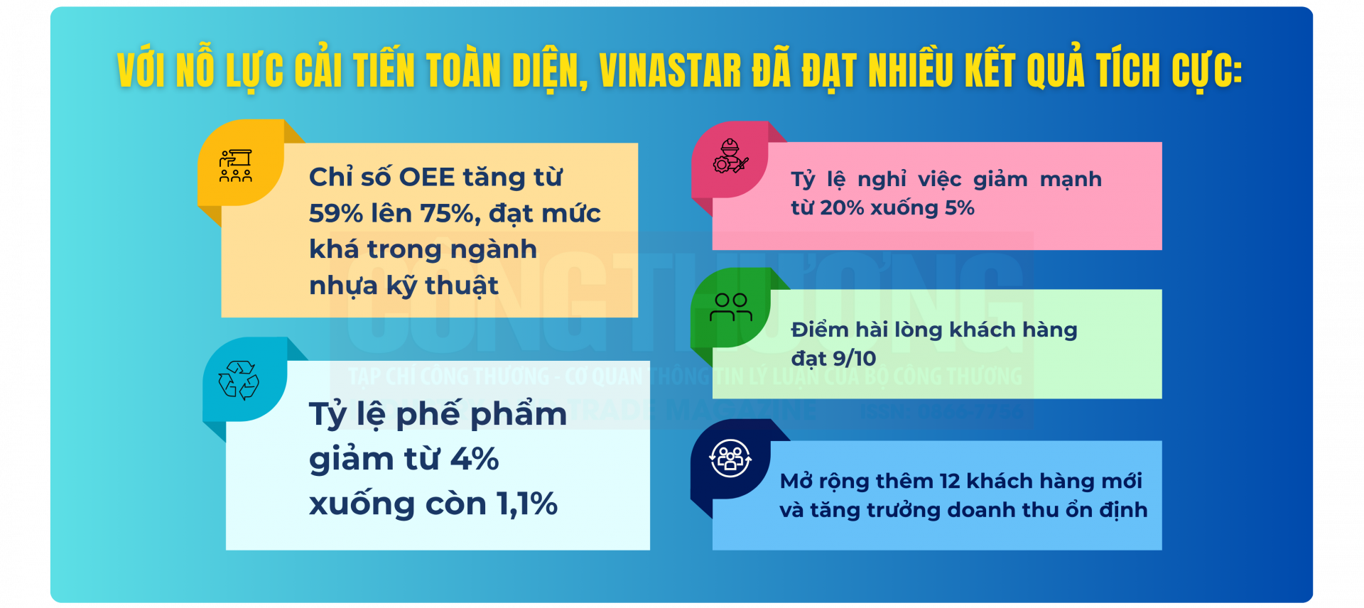 Với sự hỗ trợ của Bộ Công Thương và Viện Năng suất Việt Nam, Vinastar đã xây dựng chiến lược cải tiến toàn diện dựa trên 7 trụ cột chính, tập trung vào giải quyết 2 vấn đề cần thiết để cải tiến hệ thống, bao gồm: (i) Hiệu suất thiết bị giảm do ảnh hưởng nhiều bởi thời gian thay khuôn; (ii) Quản lý kho còn chưa tốt, chưa chuyên nghiệp và còn xảy ra nhầm lẫn.