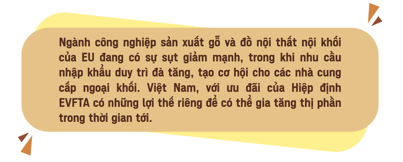 Do đó, theo Trung tâm thông tin Công nghiệp và Thương mại, Bộ Công Thương, xét tương quan trong cơ cấu nhập khẩu chủng loại của EU và xuất khẩu của Việt Nam, hiện ngành gỗ nước ta mới chỉ khai thác ở phân khúc hẹp của thị trường EU. Thời gian tới, ngành gỗ Việt Nam hoàn toàn có thể đẩy mạnh xuất khẩu và mở rộng phân khúc sản phẩm nếu đáp ứng được thị hiếu tiêu dùng và tiêu chuẩn sản phẩm bởi nhu cầu tiêu dùng của EU được dự báo tiếp tục tăng.