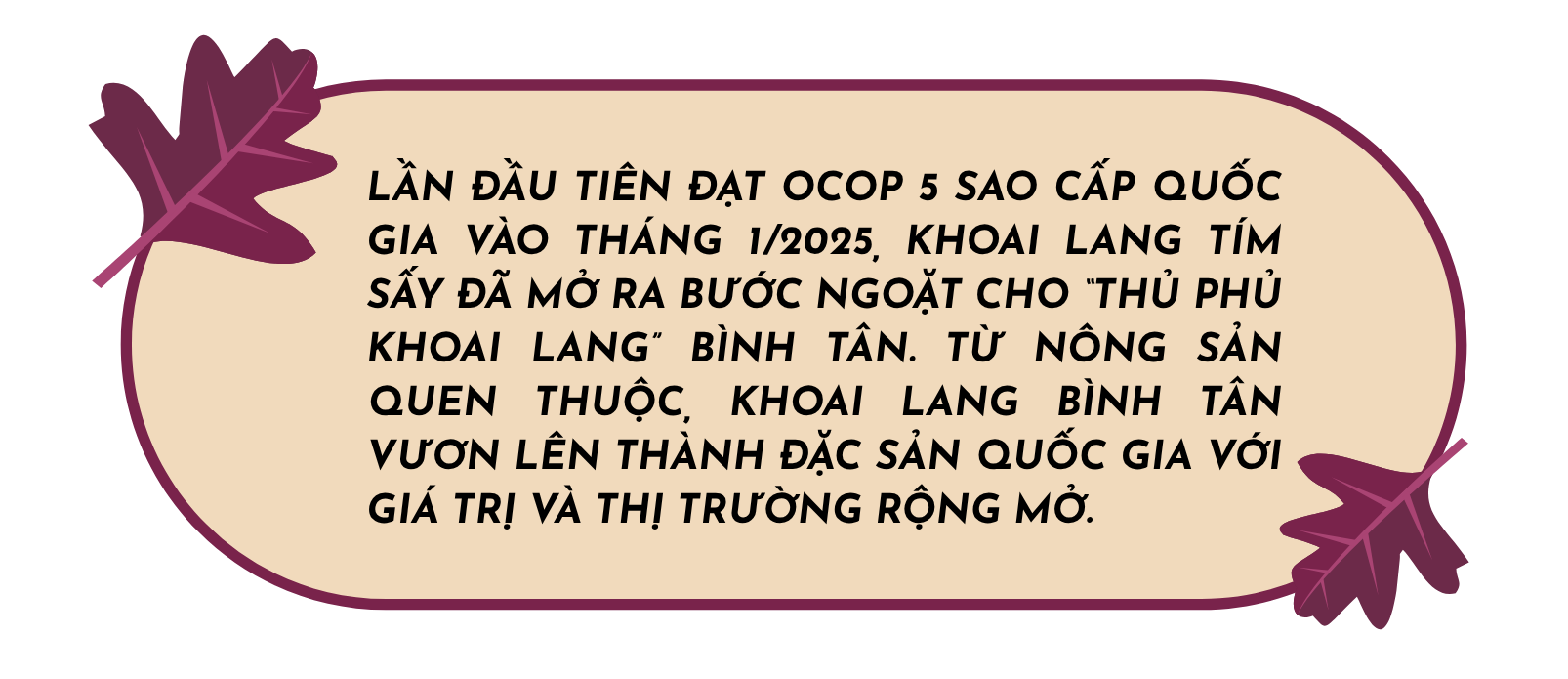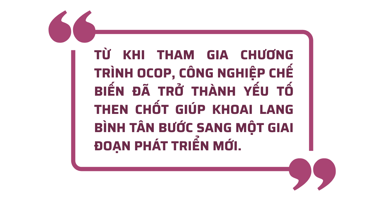 Năm 2018, chương trình Mỗi xã một sản phẩm - OCOP được triển khai rộng khắp, mở ra cơ hội để Bình Tân đưa khoai lang trở thành sản phẩm chủ lực mang tính đặc sản địa phương. OCOP không chỉ là bộ tiêu chí đánh giá sản phẩm, mà còn là động lực để nông dân, hợp tác xã và doanh nghiệp thay đổi tư duy sản xuất theo hướng chuyên nghiệp.