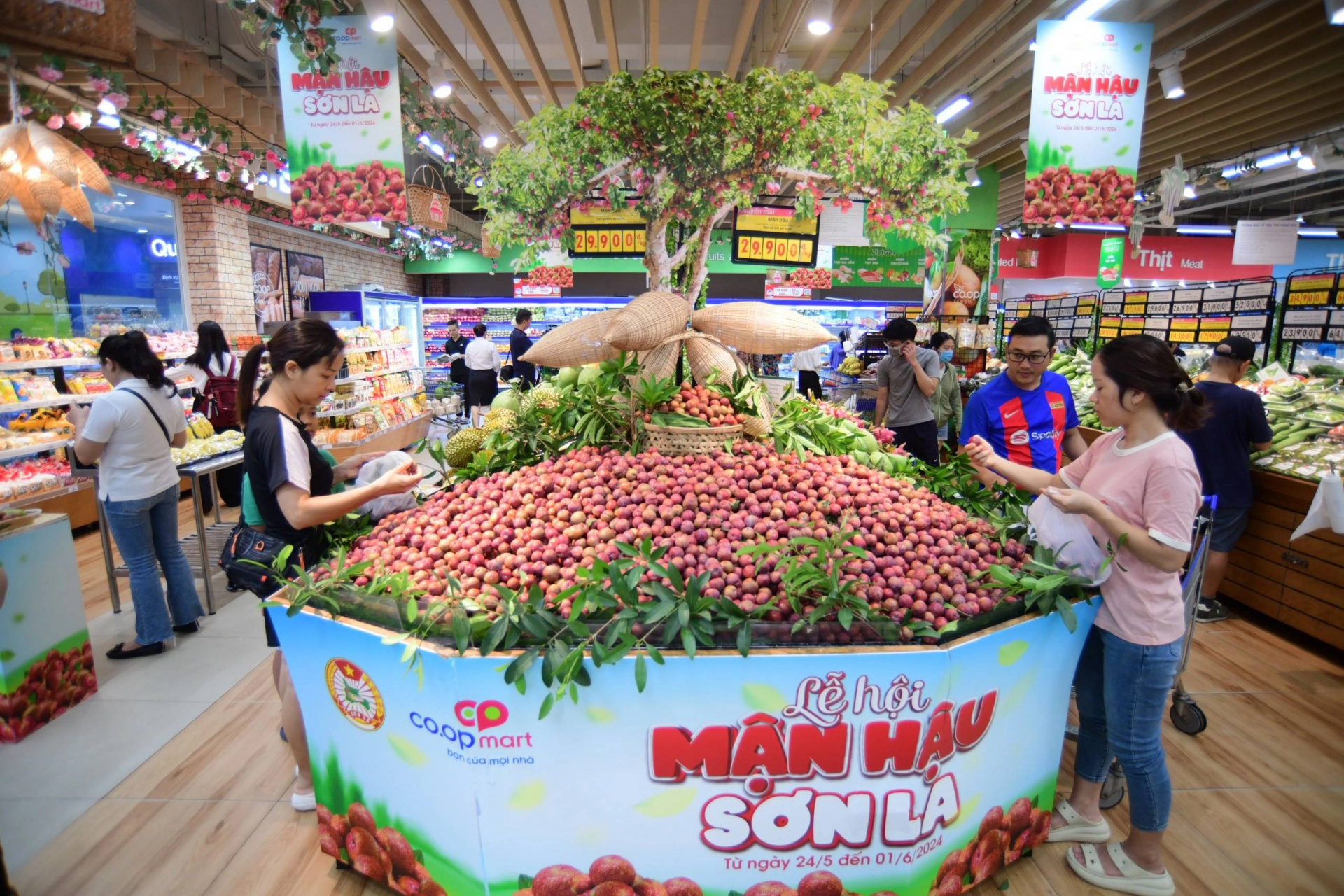 Tỉnh Sơn La cũng đã chủ động kết nối, đưa mận hậu tới các hệ thống phân phối lớn. Năm 2024 - 2025, Sơn La phối hợp với Saigon Co.op tổ chức Lễ hội “Mận hậu và nông sản tỉnh Sơn La” tại TP.HCM; chỉ riêng tuần lễ giới thiệu mận và nông sản này, Saigon Co.op tiêu thụ khoảng 100 tấn mận hậu từ vùng nguyên liệu Mộc Châu, Yên Châu, với giá bán khuyến mãi 29.900 đồng/kg trong hệ thống Co.opmart, Co.opXtra; Hội chợ xúc tiến thương mại nông sản và sản phẩm OCOP khu vực Tây Bắc - Sơn La 2025 có quy mô 250 gian hàng tiêu chuẩn với sự tham gia của 130 đơn vị.