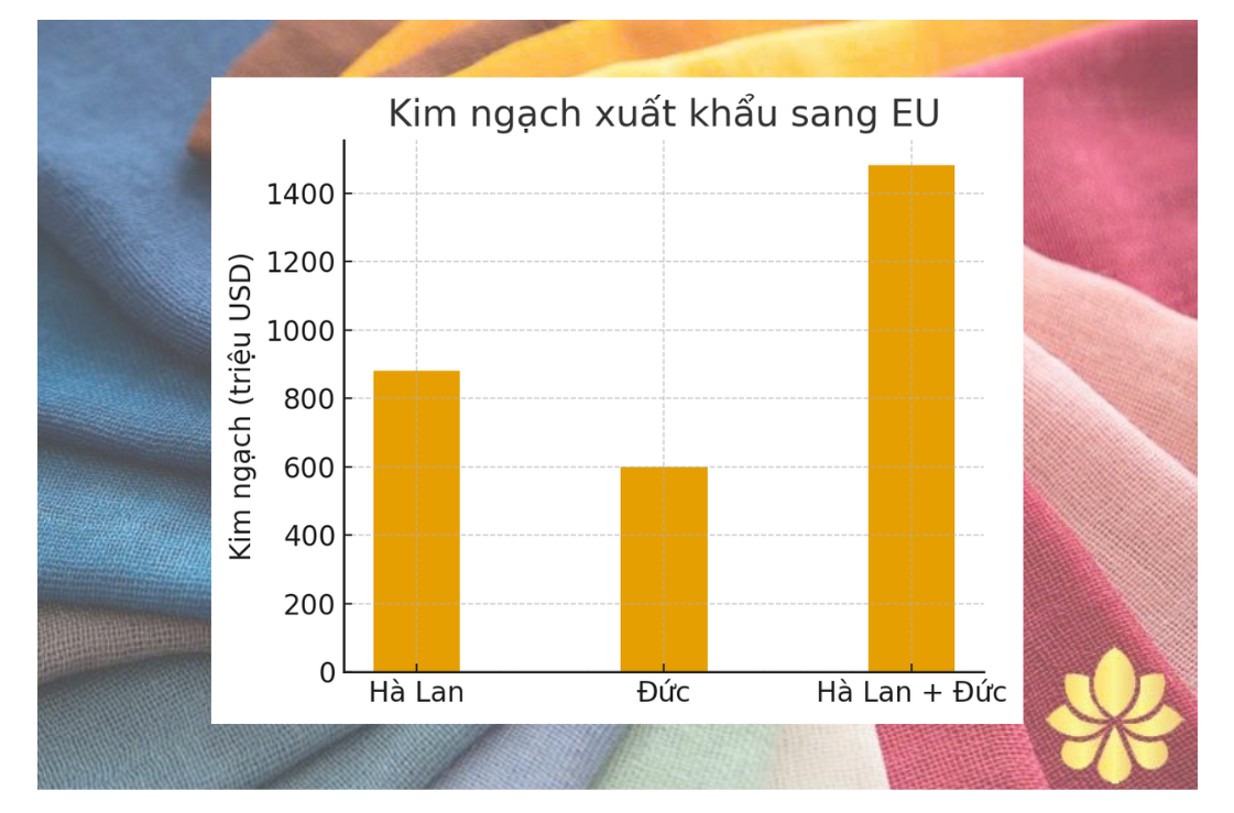 Theo tính toán từ số liệu thống kê của Hải quan Việt Nam, tổng kim ngạch xuất khẩu hàng dệt may của Việt Nam sang các thị trường trên thế giới 8 tháng năm 2025 đạt trên 26,47 tỷ USD, tăng 8,71% so với cùng kỳ năm 2024, trong đó xuất khẩu sang EU chiếm 11,76% trong tổng kim ngạch, đạt trên 3,11 tỷ USD, tăng 13,12%. Hà Lan và Đức là 2 thị trường tiêu thụ hàng dệt may lớn nhất của Việt Nam tại EU trong 8 tháng đầu năm 2025.