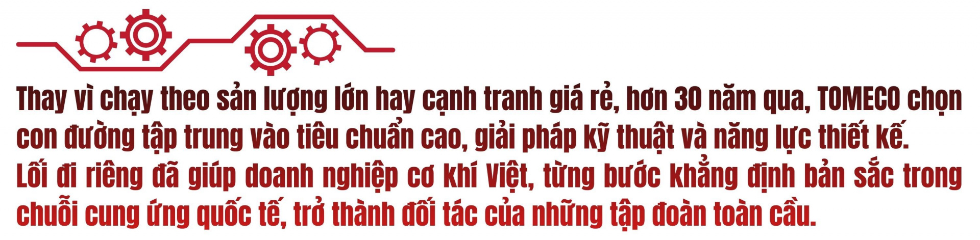 Theo ông Lê Quý Thành, TOMECO chủ động không tham gia cuộc chơi ở những thị trường “quá rộng, quá rẻ, quá tốn kém” về đầu tư thiết bị. Thay vào đó, doanh nghiệp tập trung vào thế mạnh cốt lõi: năng lực kỹ thuật, kinh nghiệm thiết kế - chế tạo, khả năng triển khai giải pháp và quản lý dự án. Đó cũng là cơ sở để TOMECO có thể đối thoại bình đẳng với các đối tác toàn cầu trên “ngôn ngữ tiêu chuẩn”, thứ ngôn ngữ chung của hệ thống sản xuất quốc tế.