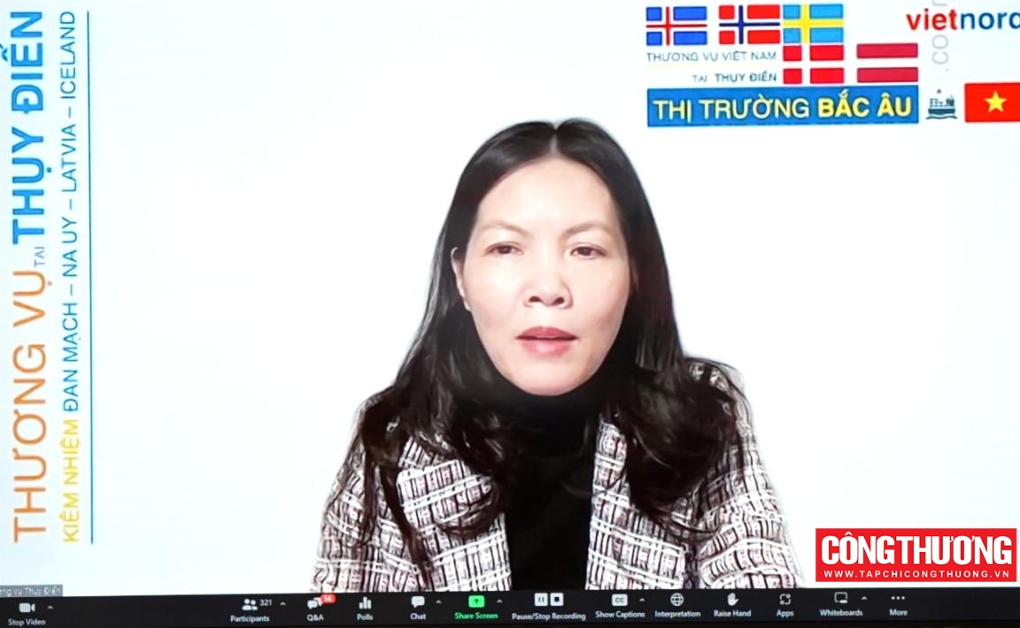 Bà Nguyễn Thị Hoàng Thúy, Tham tán thương mại, Trưởng Cơ quan Thương vụ Việt Nam tại Thụy Điển (kiêm nhiệm Na Uy, Đan Mạch, Iceland, và Latvia)