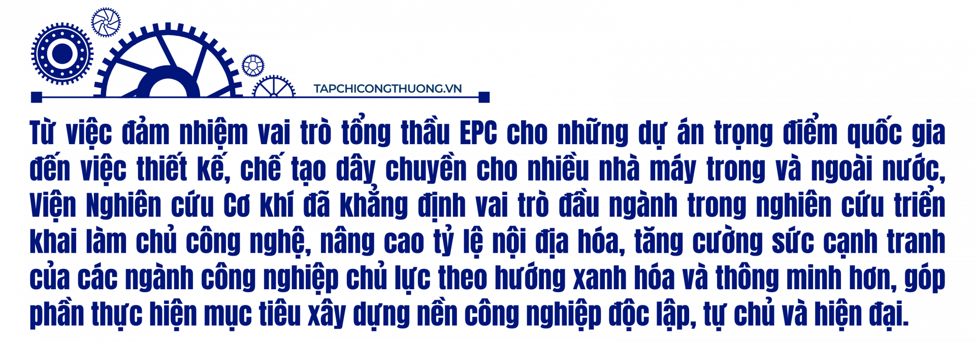 Ở mỗi lĩnh vực, dấu ấn công nghệ của Viện Nghiên cứu Cơ khí đều gắn liền với tính nội địa hóa cao, giảm nhập siêu, tiết kiệm ngoại tệ và làm chủ kỹ thuật lõi.