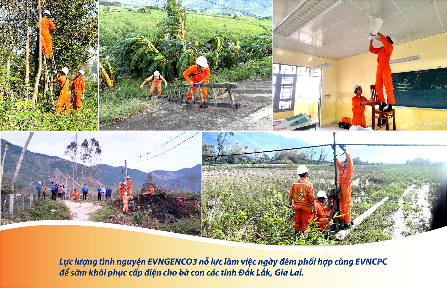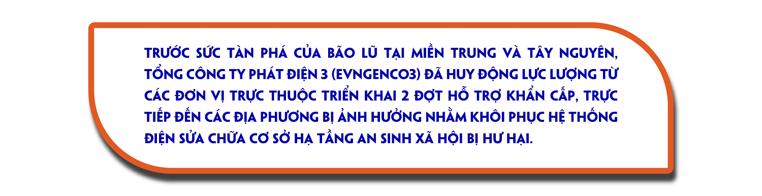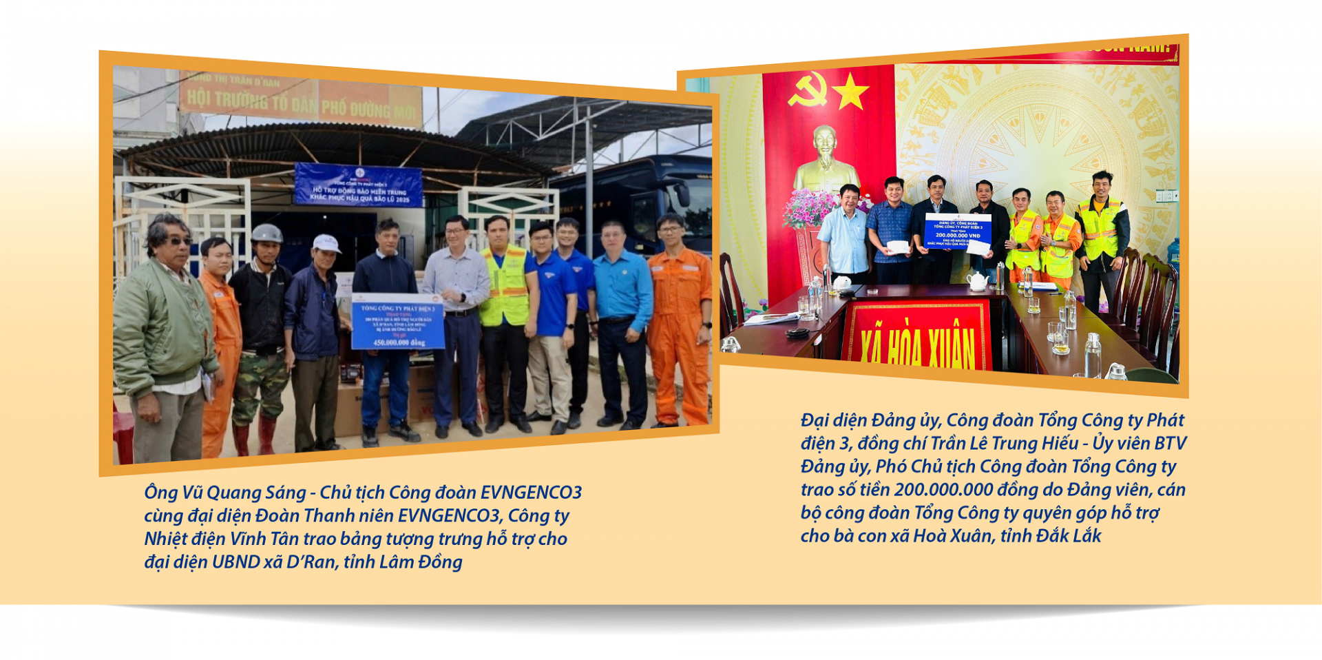 Các đơn vị tích cực tham gia gồm Công ty EPS, Nhiệt điện Phú Mỹ, Nhiệt điện Vĩnh Tân, Thủy điện Buôn Kuốp, Công ty Cổ phần Nhiệt điện Bà Rịa và Công ty Cổ phần Thủy điện Vĩnh Sơn - Sông Hinh (đơn vị liên kết đứng chân trên địa bàn). Đồng thời, thăm tặng quà, hỗ trợ an sinh xã hội cho người dân địa phương bị ảnh hưởng; tổ chức quyên góp, hỗ trợ chi phí cho các địa phương tái thiết sau bão lũ. Tổng số tiền hỗ trợ của EVNGENCO3 cho các địa phương là hơn 7 tỷ đồng.