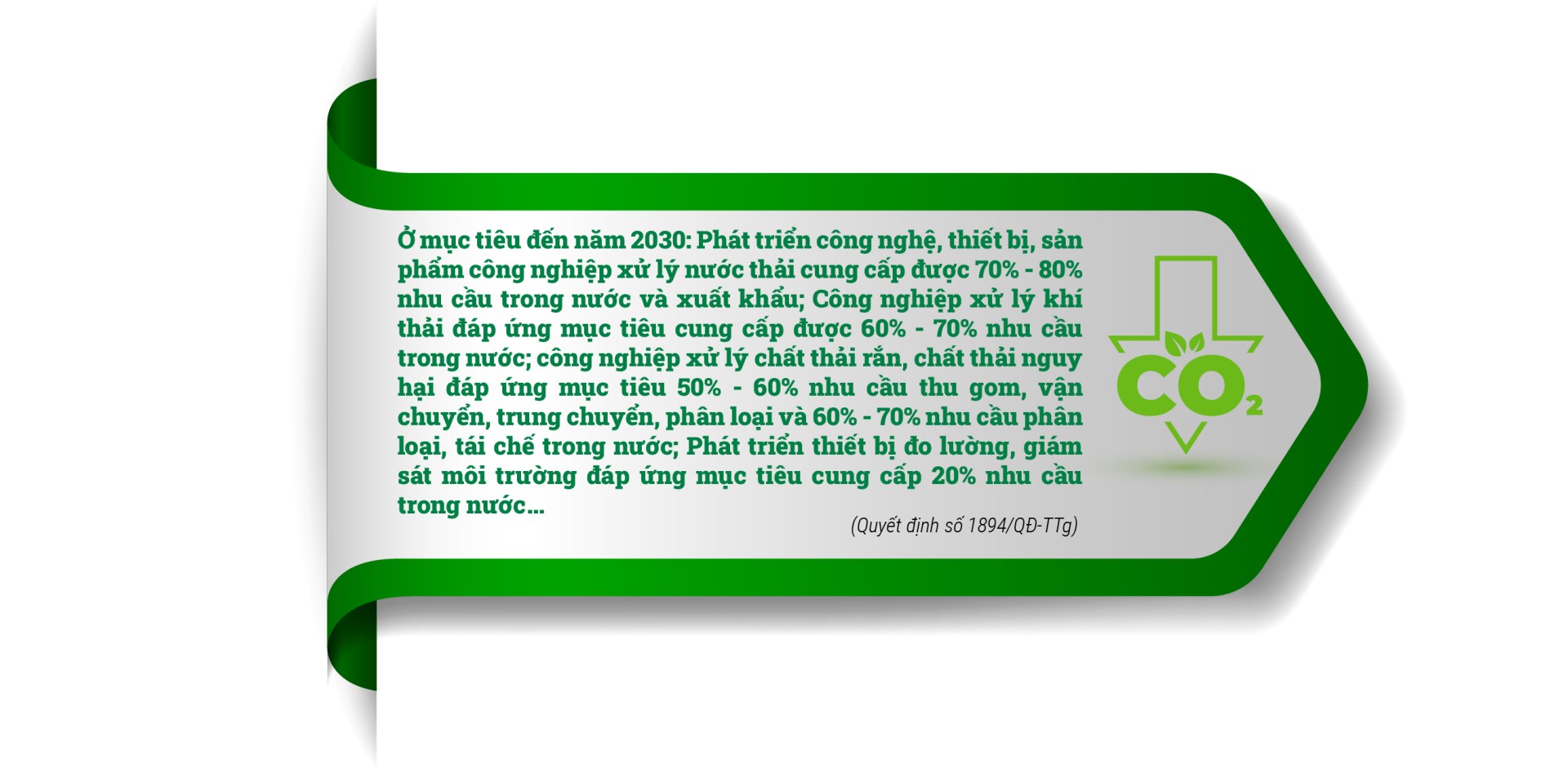 Để hoàn thành mục tiêu “đảm bảo độc lập tự chủ về công nghệ, thiết bị sản phẩm phục vụ bảo vệ môi trường” thực tế giai đoạn 2025 -2030, Ngành CNMT cần đồng thời thực hiện hiệu quả các giải pháp như: hoàn thiện khung chính sách với danh mục công nghệ ưu tiên; có các giải pháp tài chính cho nghiên cứu phát triển (R&D) và mở rộng quy mô ( scale-up); Đầu tư cho hạ tầng thử nghiệm, chuẩn hóa (với các trung tâm thử nghiệm demo centers, phòng thí nghiệm hiệu chuẩn); cùng với đó là các cơ chế “kicầu” cho sản phẩm, thiết bị Ngành ( thông qua các chương trình mua sắm xanh - green public procurement, thực thi trách nhiệm mở rộng của nhà sản xuất - EPR) tạo thị trường; phát triển chuỗi cung ứng; đào tạo nguồn nhân lực và chuyển giao công nghệ có điều kiện.
