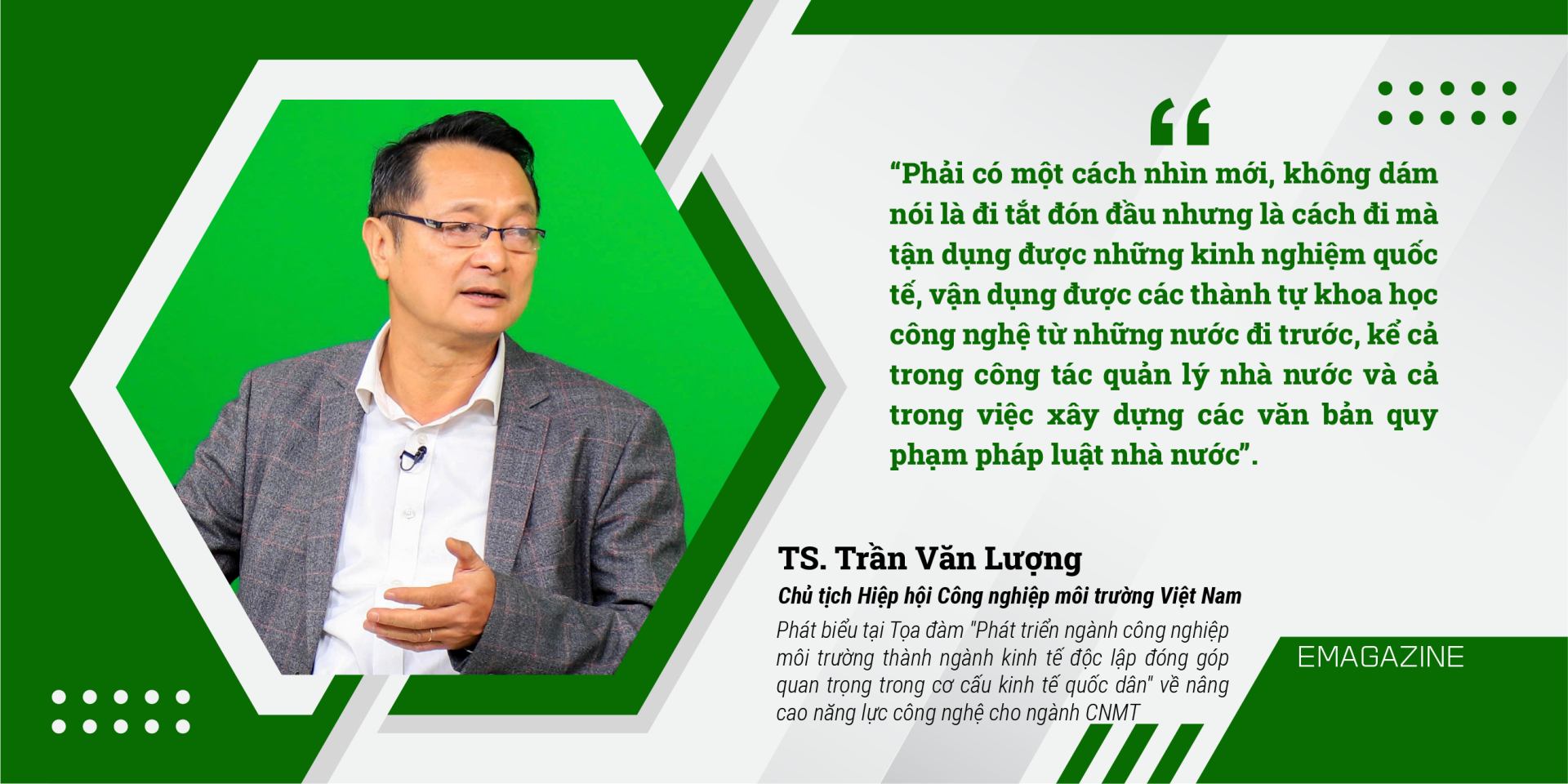 Theo TS Trần Văn Lượng để nâng cao năng lực công nghệ Việt Nam bên cạnh các giải pháp liên kết, tập hợp hiệu quả nguồn lực KHCN nội tại (vốn đang bị phân mảnh trong nước) cần phải tăng cường hợp tác, chia sẻ, kết nối, học hỏi các kinh nghiệm, thành tựu KHCN quốc tế trong lĩnh vực CNMT; đồng thời phải tăng cường mời gọi, thu hút những nhà đầu tư, nhà khoa học nước ngoài đến Việt Nam để chia sẻ các kinh nghiệm, định hướng trong vấn đề nghiên cứu khoa học cho các nhà khoa học cũng như các nhà đầu tư trong nước, mục tiêu kết nối và sử dụng một cách có hiệu quả nguồn lực KHCN trong nước. Ông Lượng chia sẻ: “Thực sự tôi cho rằng nếu chúng ta cứ bắt đầu từ đầu - cứ tự mày mò nghiên cứu, chế tạo các công nghệ, thiết bị thì sẽ tiêu tốn rất nhiều thời gian, giá trị chắc chắn sẽ không theo kịp” Vì thế theo Chủ tịch hiệp hội CNMT Việt Nam các doanh nghiệp CNMT cần cơ chế khuyến khích, cơ chế tạo thị trường minh bạch, bình đẳng thông qua các tiêu chuẩn sản phẩm, thiết bị và cơ chế thúc đẩy chuyển giao công nghệ để rút ngắn khoảng cách tiếp cận với những công nghệ hiện đại.