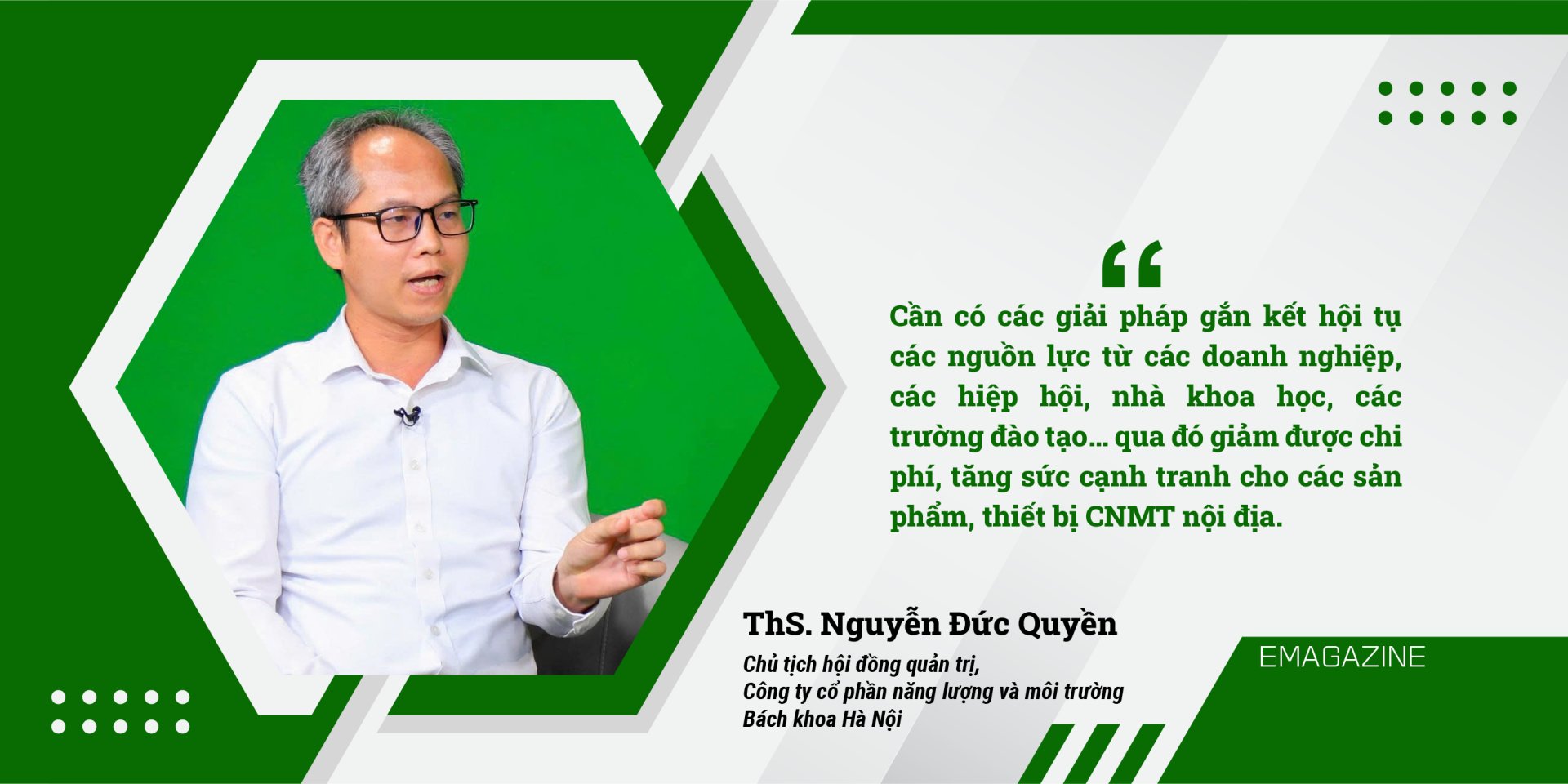TS Lượng chia sẻ, hầu hết những lĩnh vực đòi hỏi công nghệ cao, bảo vệ môi trường thời gian qua và có thể là cả trong tương lai vẫn là sân chơi thuộc về các nhà đầu tư và những doanh nghiệp cung cấp thiết bị nước ngoài; Các doanh nghiệp, nhà khoa học CNMT trong nước hiện vẫn đang mày mò, tự mình thử nghiệm và đáp ứng một cái mức độ thị trường nhất định. Còn thị trường đòi hỏi công nghệ cao, nguồn lực lớn vẫn thuộc về khu vực nước ngoài. Từ thực trạng này Chủ tịch Hiệp hội CNMT Việt Nam cho rằng những mục tiêu Chương trình phát triển ngành CNMT giai đoạn 2025 -2030 đặt ra sẽ là đòn bẩy tạo động lực cho các doanh nghiệp, nhà sản xuất ngành CNMT trong nước tăng tốc bứt phá.