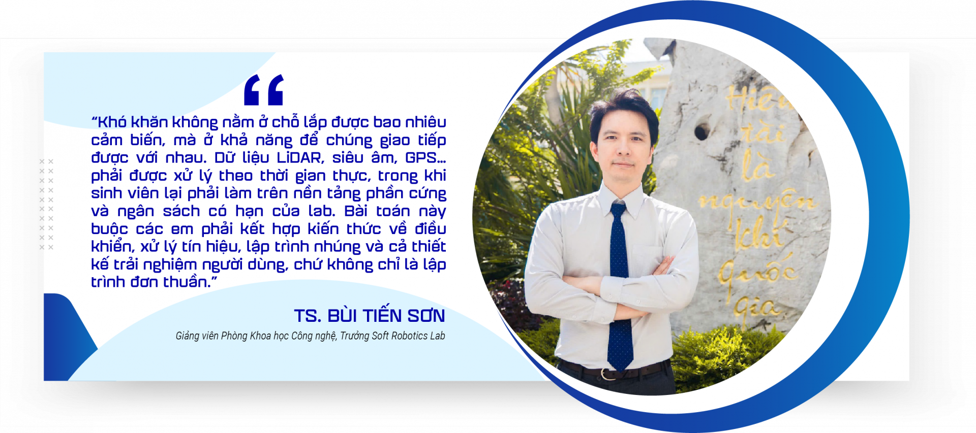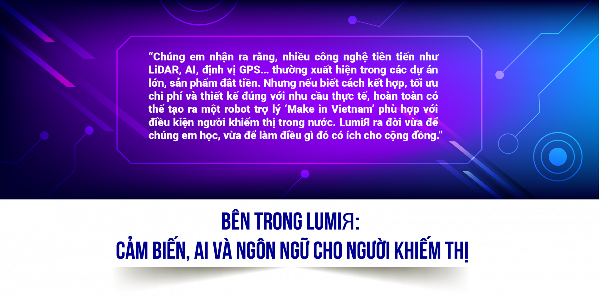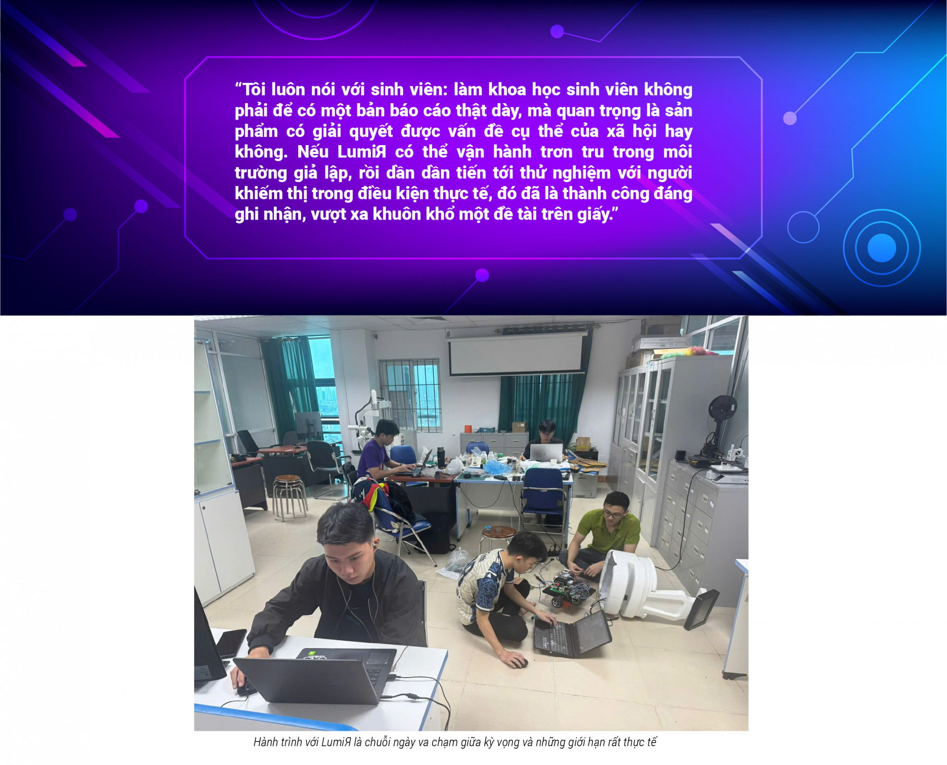 Về phía nhóm nghiên cứu, hành trình với LumiЯ là chuỗi ngày va chạm giữa kỳ vọng và những giới hạn rất thực tế. Máy tính không đủ mạnh để chạy các mô hình AI phức tạp, ngân sách hạn chế khiến việc lựa chọn cảm biến luôn phải cân nhắc giữa “tốt nhất” và “đủ dùng”, quá trình tích hợp nhiều khi gặp lỗi bất ngờ vào đúng lúc gần hoàn thiện. Tuy vậy, chính những va vấp đó lại tạo ra bước trưởng thành. Nguyễn Văn Tình thừa nhận: