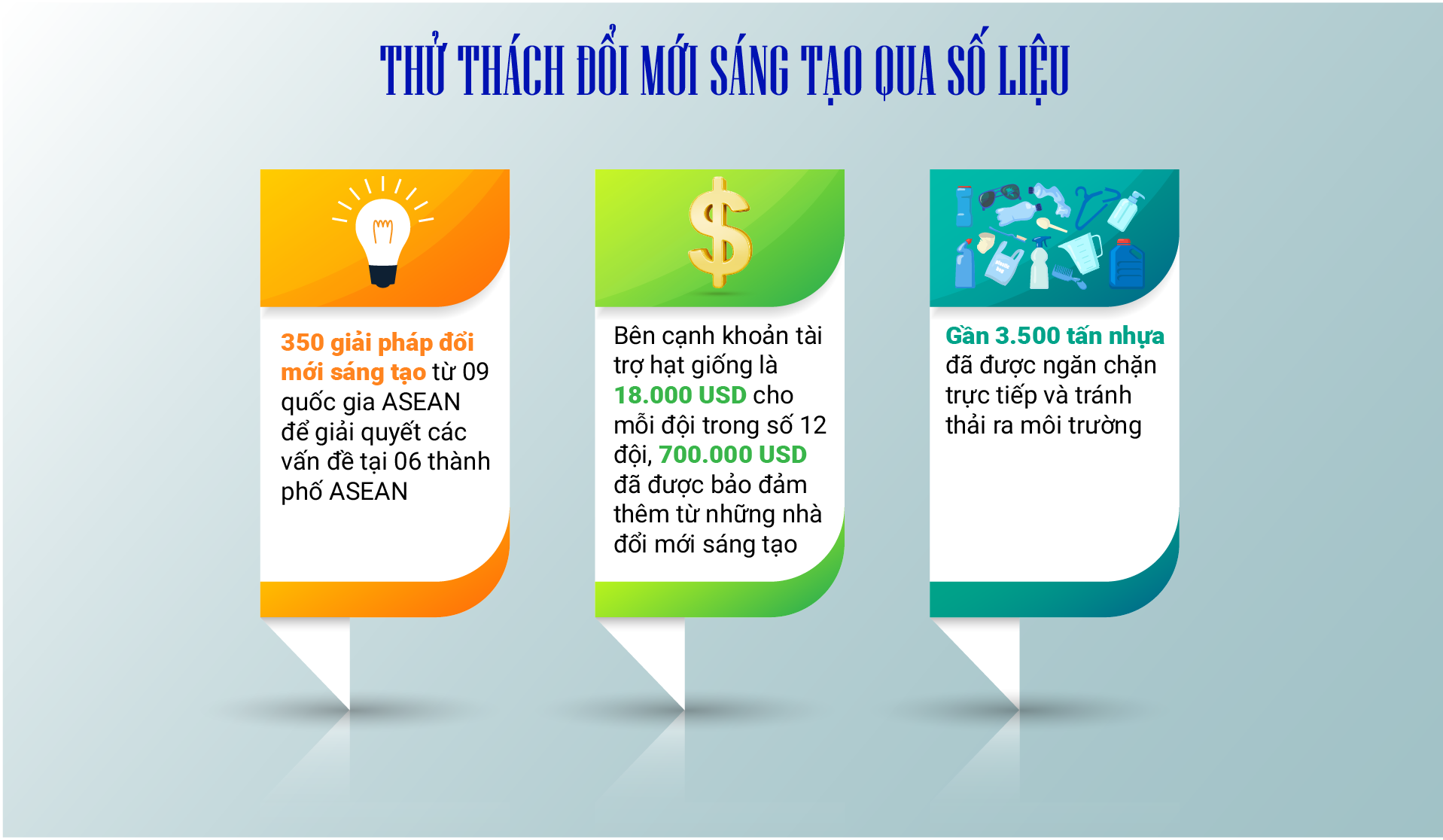 Với mục tiêu tìm kiếm, hỗ trợ các ý tưởng sáng tạo để ngăn chặn ô nhiễm nhựa ngay từ nguồn, trong suốt 5 năm, cuộc thi đã thu hút gần 350 hồ sơ từ các nước ASEAN. 47 đội lọt vào vòng chung kết, và 12 đội xuất sắc giành được tài trợ hạt giống, đào tạo và hỗ trợ tăng tốc. Các giải pháp này đã góp phần ngăn chặn và xử lý khoảng 3.500 tấn nhựa không để xâm nhập vào môi trường. Điển hình như các ý tưởng: ống hút cỏ GreenJoy tại Việt Nam, công nghệ tái chế không dung môi CIRAC tại Thái Lan, các trạm nạp lại Siklus tại Indonesia, nền tảng tái chế kỹ thuật số TrashCash tại Philippines; tại Campuchia và Lào, các bạn trẻ cũng đã phát triển sản phẩm thân thiện môi trường, sáng kiến tái chế và thiết bị chạy bằng năng lượng mặt trời để giữ nhựa ngoài sông biển…“Thử thách sáng tạo giảm thiểu ô nhiễm rác thải nhựa” đã cho thấy sức mạnh của đổi mới sáng tạo trong việc thúc đẩy kinh tế tuần hoàn, ngăn chặn và giảm thiểu ô nhiễm nhựa ra môi trường.