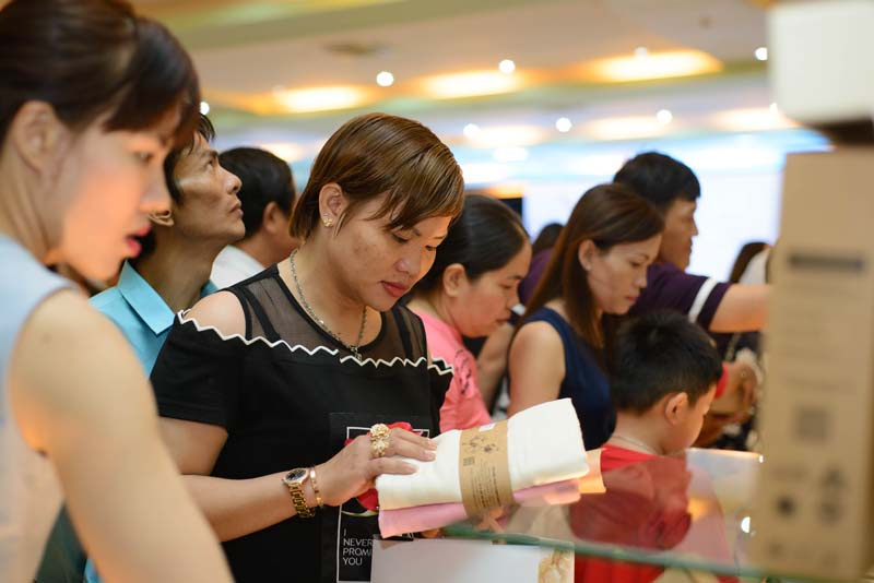 Bà Heppy - Tổng Giám đốc Công ty Grande Affari (đơn vị phân phối khăn bông cao cấp Mollis tại thị trường Singapore đã đánh giá cao mẫu mã cũng như chất lượng sản phẩm khăn bông cao cấp Mollis được sản xuất từ nguyên liệu sợi bông hữu cơ của Tổng công ty Cổ phần Phong Phú.