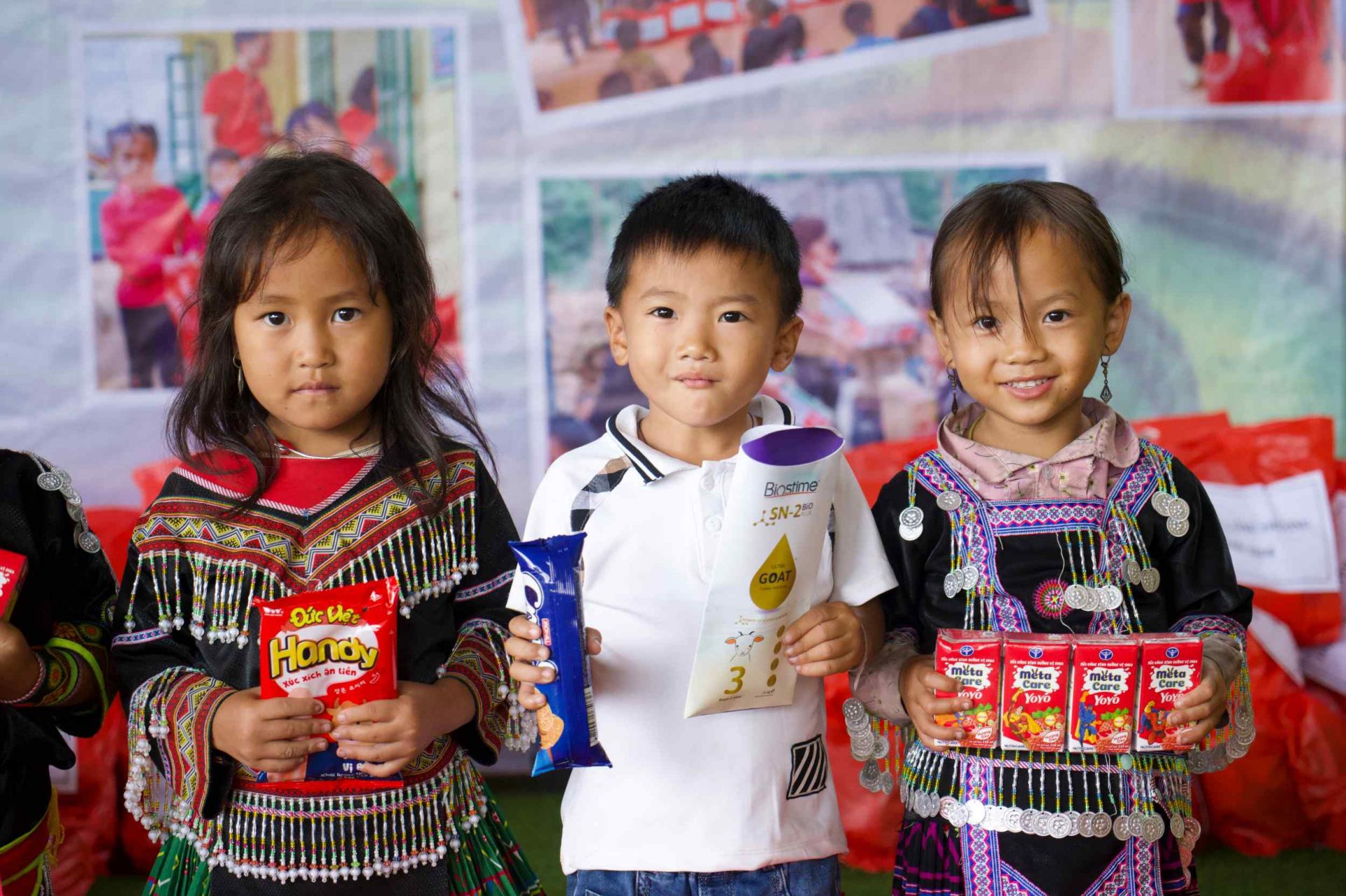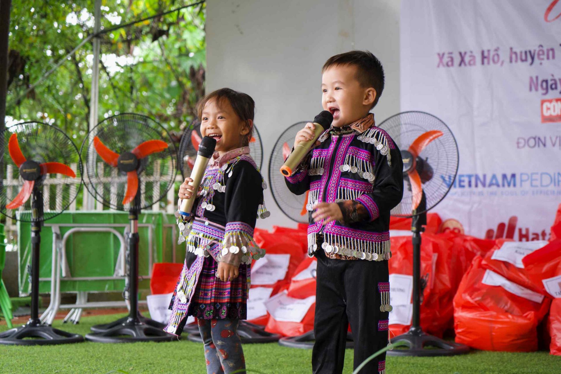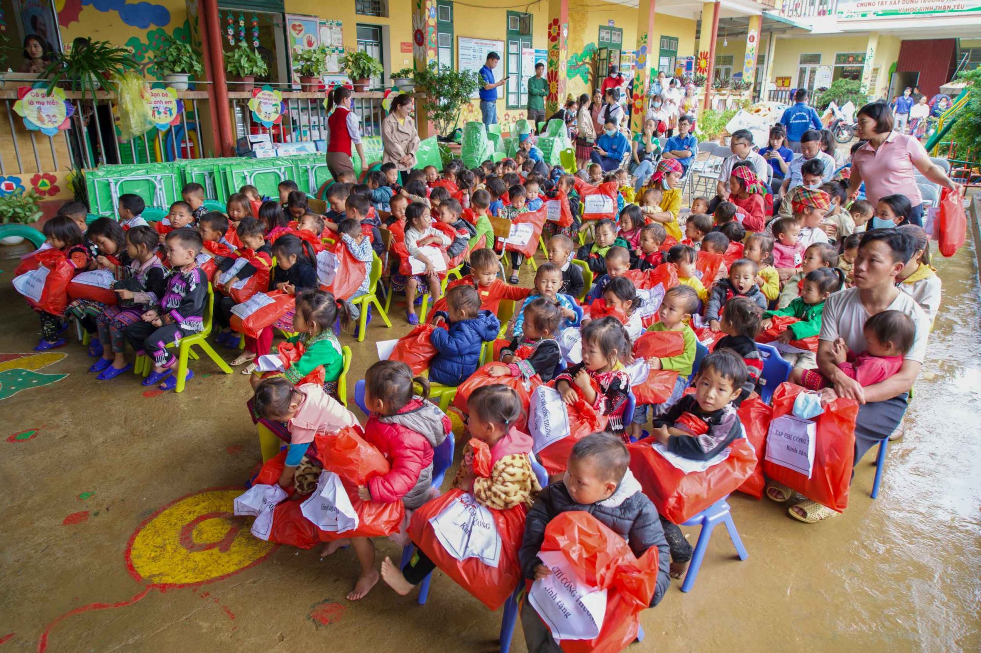 Nhờ đó, Chương trình có thể hỗ trợ Trường Mầm non Hoa Hồng các hạng mục bao gồm: Lát nền 03 lớp học tại 03 điểm trường thôn Tà Đằng, Suối Giao và Khấu Dê; 30 bộ bàn ghế (1 bàn + 2 ghế); 01 tủ nấu cơm công nghiệp; 05 tivi; 07 quạt cây; 50 chăn ấm; 355 áo ấm; 355 khăn mặt; 355 đôi dép tổ ong; 355 gối ngủ mầm non.