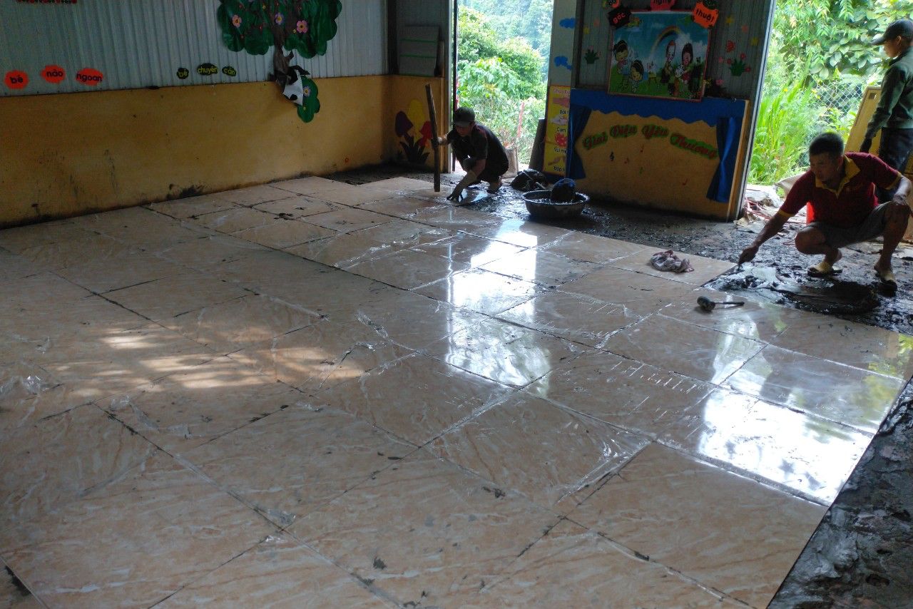 Cô Nguyễn Thị Kim Thoa - Hiệu trưởng Trường Mầm non Hoa Hồng cho hay, 3 điểm trường được hỗ trợ lát nền là 3 điểm mầm non khó khăn nhất của Xà Hồ, con đường lên trường đèo dốc hiểm trở, phải vận chuyển vật liệu bằng xe máy, thậm chí phụ huynh phải gùi trên lưng… Nền đất và nền xi măng bụi bẩn hàng ngày, hôm nay đã được thay bằng nền gạch hoa sạch sẽ.