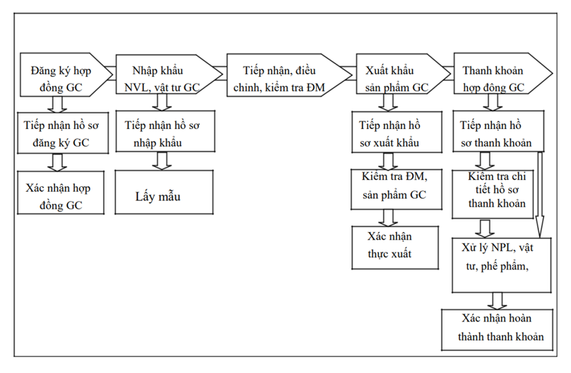 Quy trình thủ tục GCXK được sắp xếp hợp lý, từ khi DN thông báo hợp đồng, nhập khẩu nguyên phụ liệu, xuất khẩu sản phẩm đến thanh khoản hợp đồng. Quy trình đáp ứng yêu cầu hội nhập bằng cách đơn giản hóa thủ tục và hỗ trợ DN. Trong đó, khâu đăng ký định mức và xuất khẩu sản phẩm là quan trọng nhất, dễ bị lợi dụng để gian lận thuế. DN có thể khai sai định mức nguyên phụ liệu tiêu hao hoặc xuất khẩu khống hàng hóa để tiêu thụ trong nước.