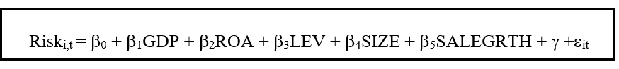 Mức độ chấp nhận rủi ro (Risk) được đo lường bởi các thước đo khác nhau gồm: (i) Biến động của tỷ suất sinh lời (ROA) theo giá trị trên các báo cáo tài chính; (ii) biến động tỷ suất sinh lời (ROA) theo giá thị trường của cổ phiếu; (iii) và một số thước đo khác như đòn bẩy tài chính, biến động của Tobin’s Q, hệ số Z-score. Nghiên cứu lựa chọn thước đo mức độ chấp nhận rủi ro là sự biến động của tỷ suất sinh lời trên sổ sách kế toán gồm biến động của ROA đại diện cho biến động dòng thu nhập của công ty (Faccio và cộng sự, 2016; Nakano và Nguyen (2012). Theo Cao và cộng sự (2023), mức độ chấp nhận rủi ro được đo lường theo công thức như sau: