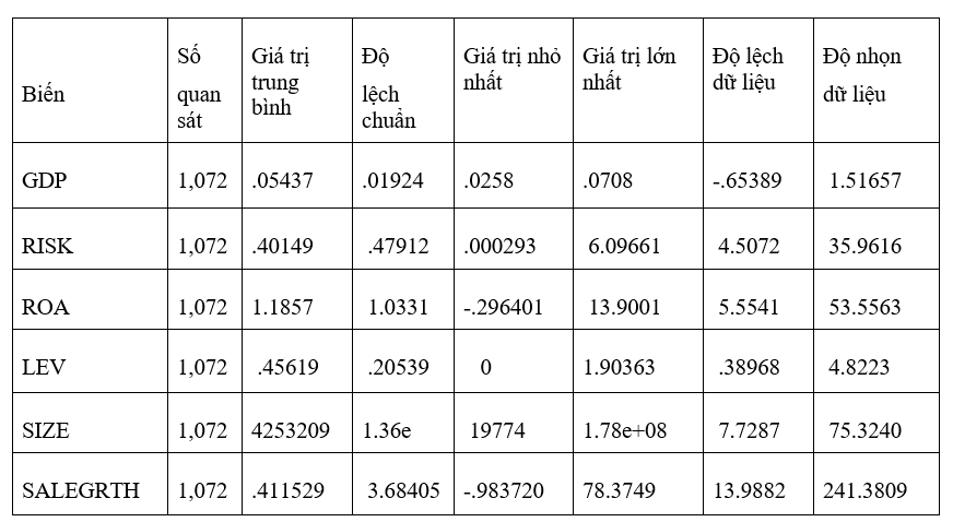 Tác giả cũng đã kiểm tra hệ số tương quan Pearson giữa các biến và thấy rằng hệ số tương quan giữa mức độ chấp nhận rủi ro của công ty (RISK) và các biến tương đối thấp, giúp giảm bớt mối quan tâm liên quan đến vấn đề đa cộng tuyến trong hồi quy.