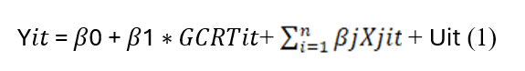 - Xjit là tập hợp các biến độc lập, bao gồm tín dụng xanh (GCRT), quy mô ngân hàng (Size), tỷ lệ cho vay trên tổng tài sản (LD), tỷ lệ nợ xấu (NPL), hệ số an toàn vốn (CAP), biên lãi ròng (NIM), tăng trưởng GDP (GDP), cung tiền M2 (GM2) và tỷ lệ vốn chủ sở hữu (EquitySize).