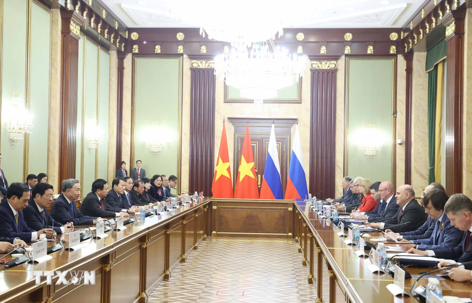Tổng Bí thư Tô Lâm nhấn mạnh, Đảng, Nhà nước và nhân dân Việt Nam luôn trân trọng và ghi nhớ sâu sắc sự ủng hộ quý báu của Liên Xô trước đây và Liên bang Nga ngày nay trong sự nghiệp đấu tranh giải phóng dân tộc cũng như công cuộc xây dựng và bảo vệ Tổ quốc. Trong bối cảnh quốc tế biến động nhanh chóng, Việt Nam đặc biệt coi trọng quan hệ hữu nghị truyền thống, sẵn sàng hợp tác chặt chẽ với Liên bang Nga để nâng tầm quan hệ.