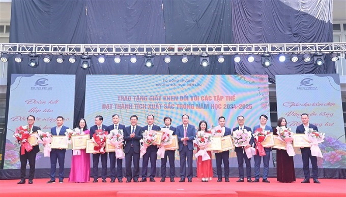 NGƯT.PGS.TS Vũ Đình Ngọ, PGS.TS Nguyễn Lê Cường trao tặng giấy khen đối với các tập thể đạt thành tích Xuất sắc trong năm học 2024-2025.