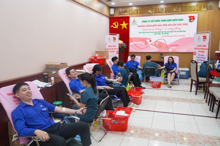 Ngày 13/11/2025, được sự nhất trí của Đảng ủy, Ban Lãnh đạo Công ty và nằm trong chuỗi hoạt động chào mừng kỷ niệm 50 năm ngày thành lập Công ty CP Phân bón Miền Nam (19/4/1976 - 19/4/2026), Đoàn TNCS Hồ Chí Minh Công ty phối hợp với Trung tâm Hiến máu Nhân đạo TP. Hồ Chí Minh tổ chức Chương trình hiến máu tình nguyện năm 2025 tại Văn phòng Công ty với chủ đề “Giọt máu hồng - Vì cộng đồng”. Chương trình thu hút đông đảo đoàn viên thanh niên và người lao động tại Văn phòng Công ty và các đơn vị trực thuộc tham gia.
