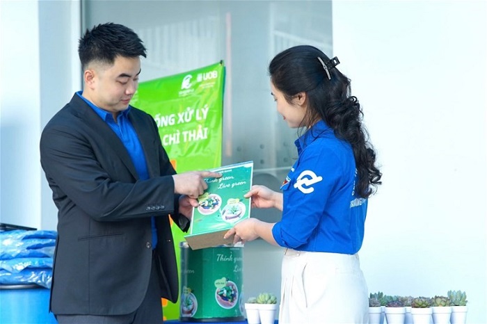 Bên cạnh đó, chương trình “Đổi pin cũ - Nhận cây xanh” được tổ chức tại sảnh B1 đã thu hút đông đảo sinh viên tham gia. Những viên pin đã qua sử dụng - một loại rác thải nguy hại - được thu gom và đổi lấy cây xanh, qua đó góp phần lan tỏa thông điệp sống xanh, tiêu dùng có trách nhiệm và bảo vệ môi trường từ những hành động nhỏ nhất.