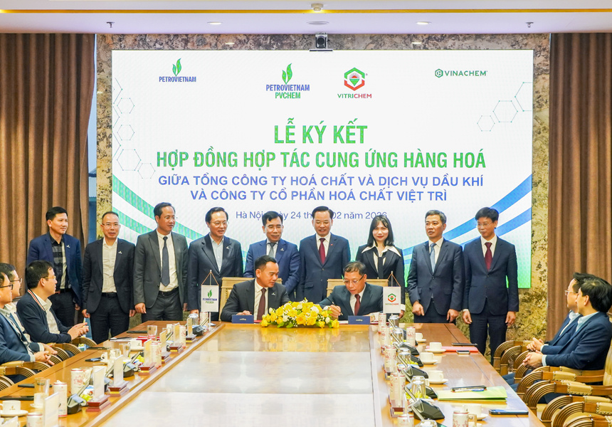 Chiều ngày 24/02/2026, tại Tập đoàn Công nghiệp Năng lượng Quốc gia Việt Nam, đã diễn ra Lễ ký kết Hợp đồng hợp tác cung ứng Xút lỏng (NaOH) cho Nhà máy Lọc hóa dầu Nghi Sơn giữa Tổng Công ty Hóa chất và Dịch vụ Dầu khí - CTCP (PVChem) - đơn vị thành viên của Petrovietnam, và Công ty Cổ phần Hóa chất Việt Trì (Vitrichem) - đơn vị thành viên của Tập đoàn Hóa chất Việt Nam (Vinachem).