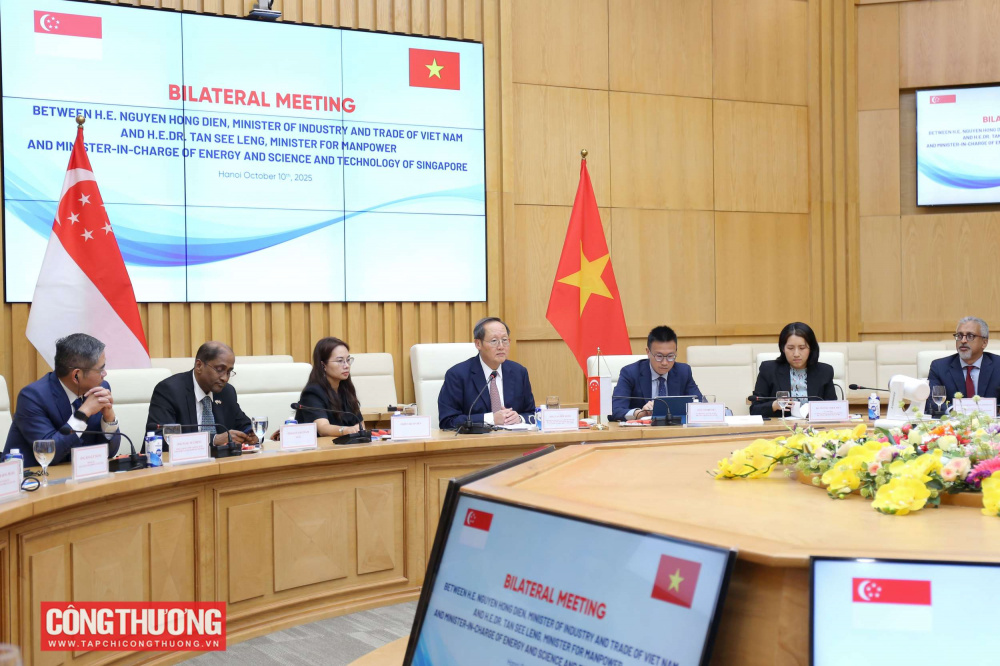 Theo Cổng Thông tin điện tử Bộ Công Thương, chiều 10/10/2025, Bộ trưởng Bộ Công Thương Nguyễn Hồng Diên đã hội đàm với Bộ trưởng Bộ Công Thương phụ trách năng lượng và khoa học - công nghệ Singapore Tan See Leng nhân dịp Bộ trưởng tham dự Hội nghị Bộ trưởng về Kết nối Kinh tế Việt Nam - Singapore lần thứ 19 được tổ chức tại Việt Nam.